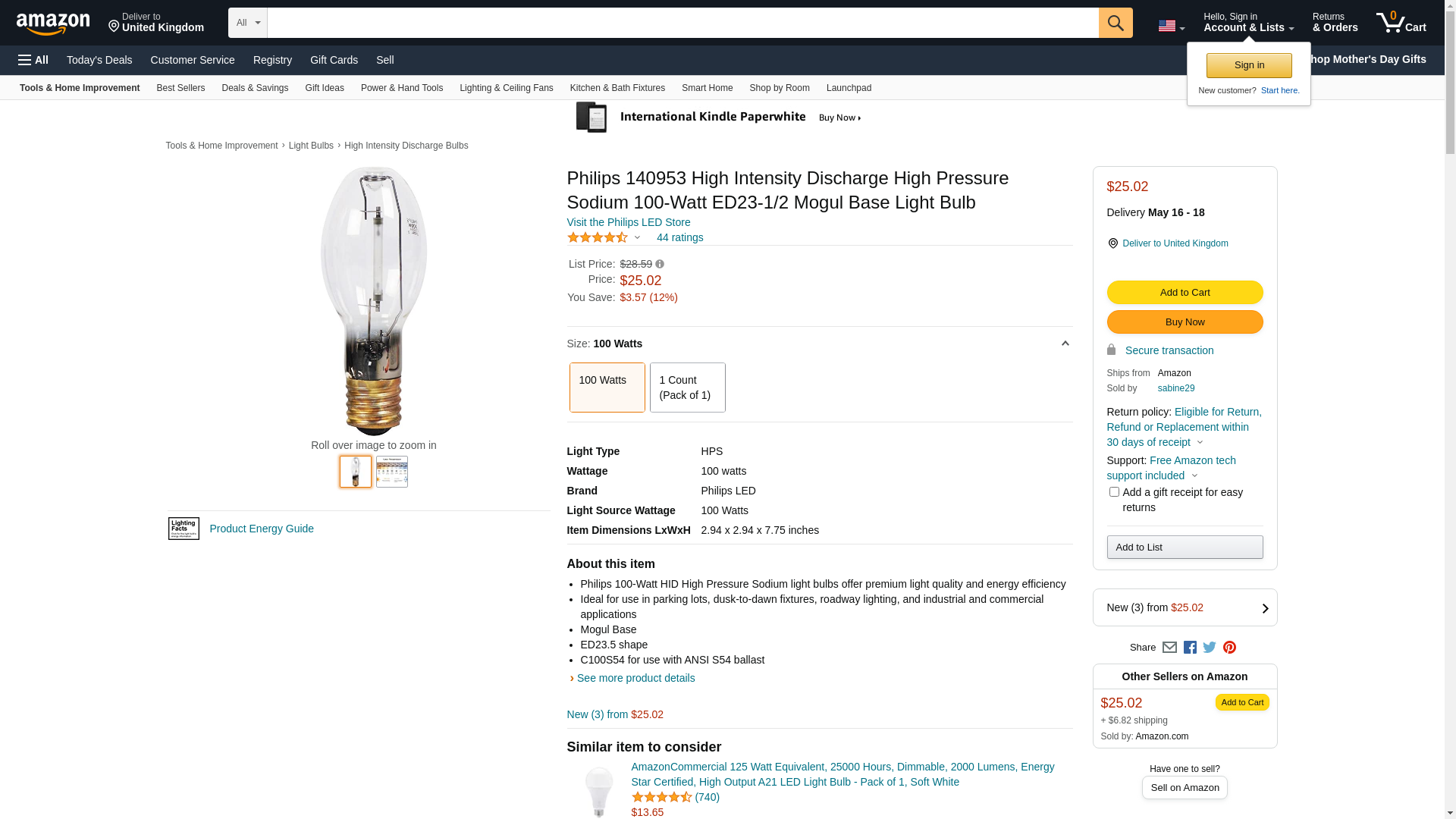 - Philips 100-Watt HID High Pressure Sodium light bulbs offer premium light quality and energy efficiency