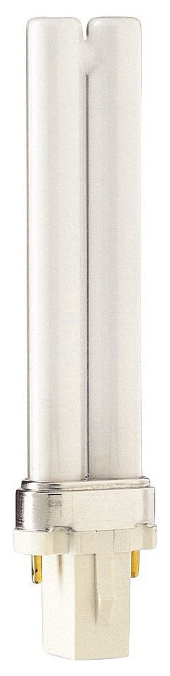Philips Lighting Alto 7.1-Watt PL-S 2-Pin G23 Base linear compact fluorescent lamp offers 400 Lumens of bright light output. It has efficacy of 57 LPW. Lamp has current rating of 0.175 Amp. It has color rendering index of 82. Lamp with 2700K color temperature rating radiates incandescent white light to the surrounding. Lamp measures 135 mm x 28 mm Dia. It comes with average life of 10000 hours.