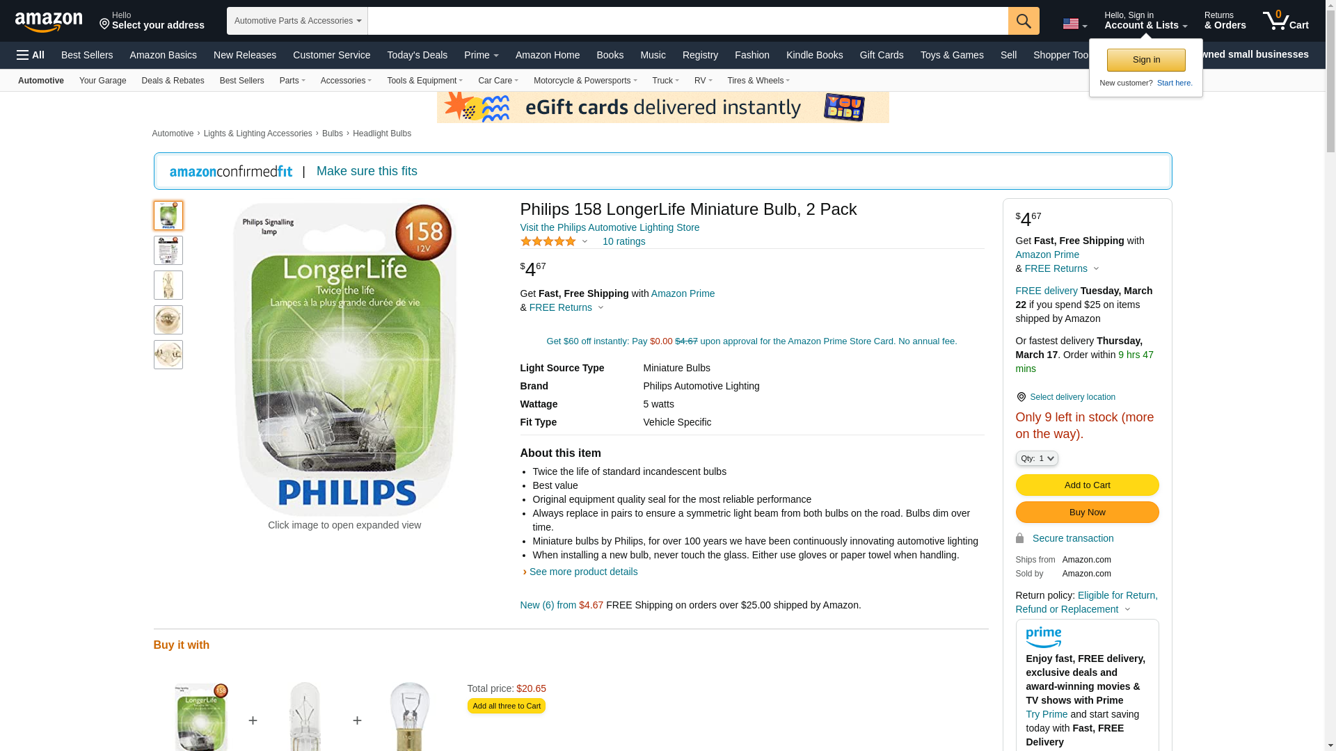 ![]() BulbAmerica | 158LLB2 | 1 | 1 | 1 @ $3.99 | |