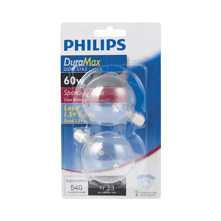 Philips 166990 - 60G16-1/2/C/CL/LL G16 5 Decor Globe Light Bulb\uff0c2pcs