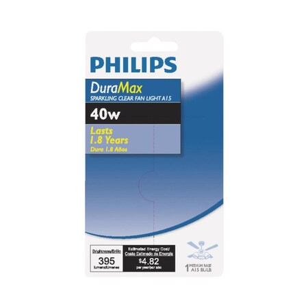 Philips Duramax 40W Clear Medium A15 Incandescent Ceiling Fan Light Bulb - 1 Each