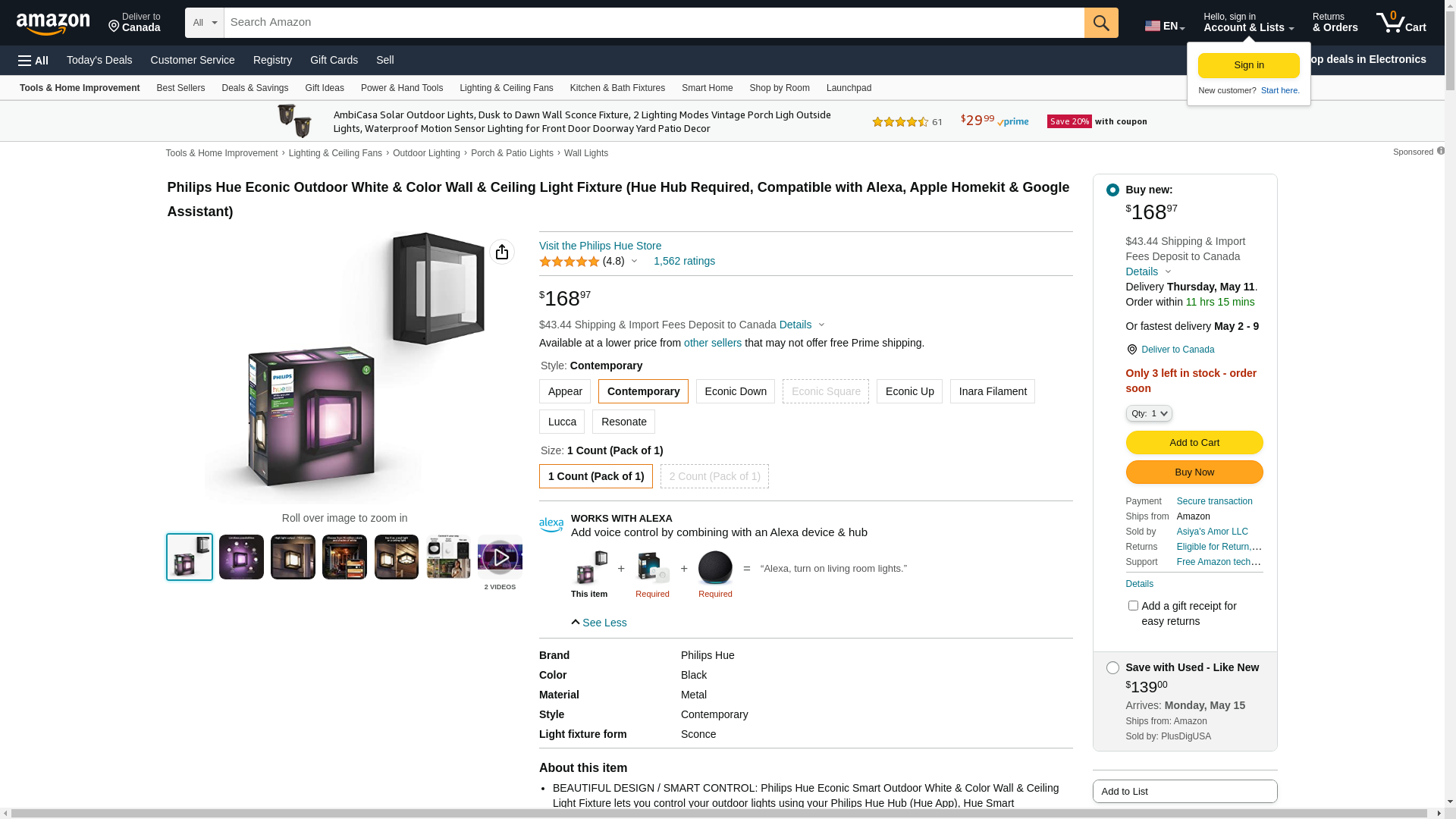- WHAT’S IN THE BOX - Includes one black Hue Econic Square outdoor White and Color Ambiance wall light; Perfect for your porch, patio, front doors, garden, and more