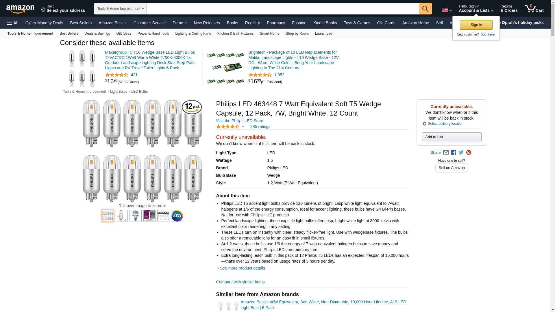 Philips 463448 7W Equivalent Soft White T5 Wedge Capsule 2 Pack