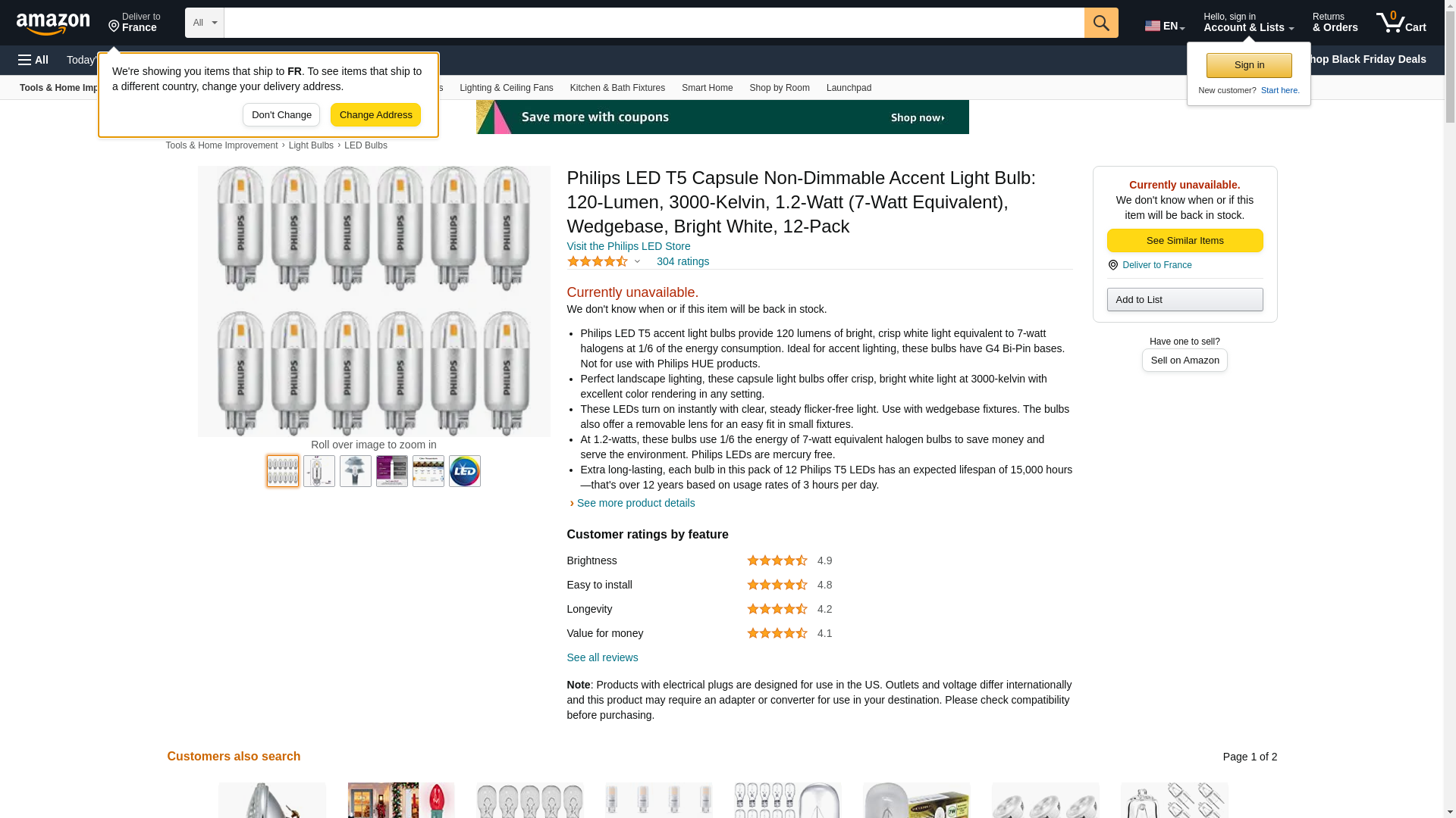 | Feature | Philips LED T5 accent light bulbs provide 120 lumens of bright, crisp white light equivalent to 7-watt halogens at 1/6 of the energy consumption. Ideal for accent lighting, these bulbs have G4 Bi-Pin bases. Not for use with Philips HUE products. |
