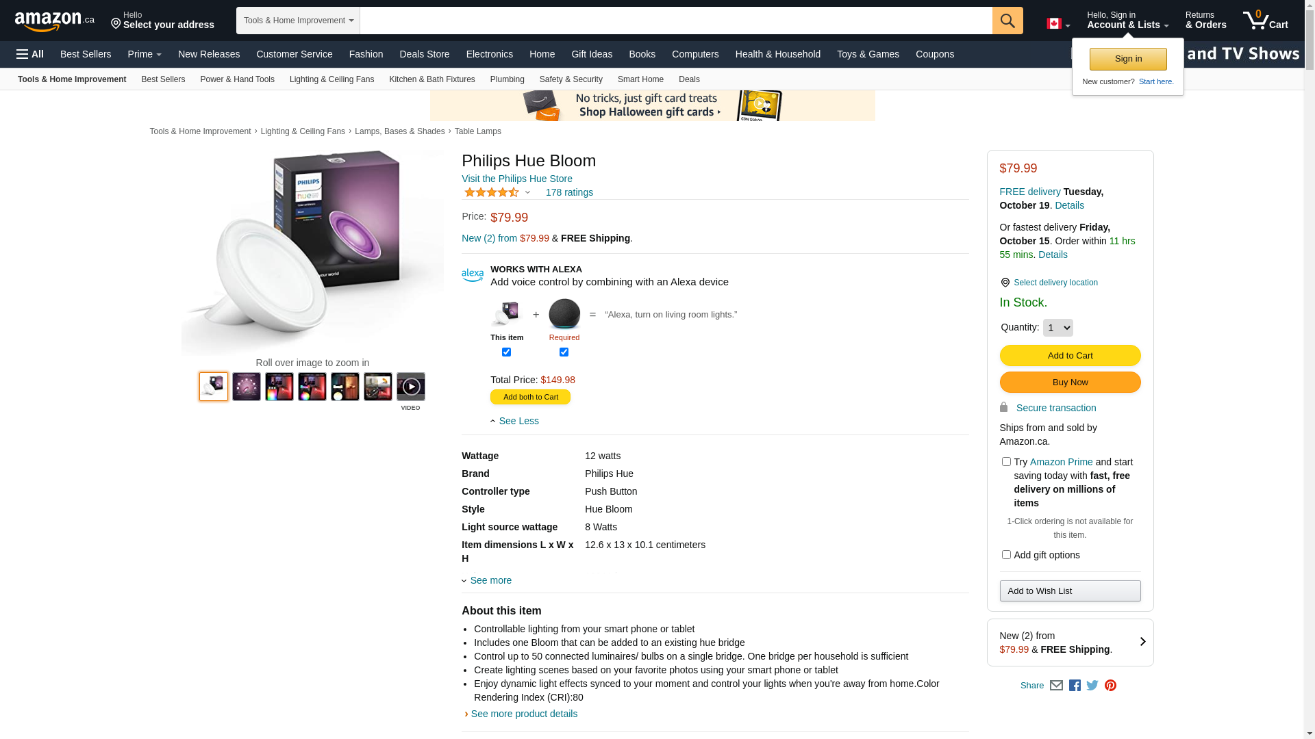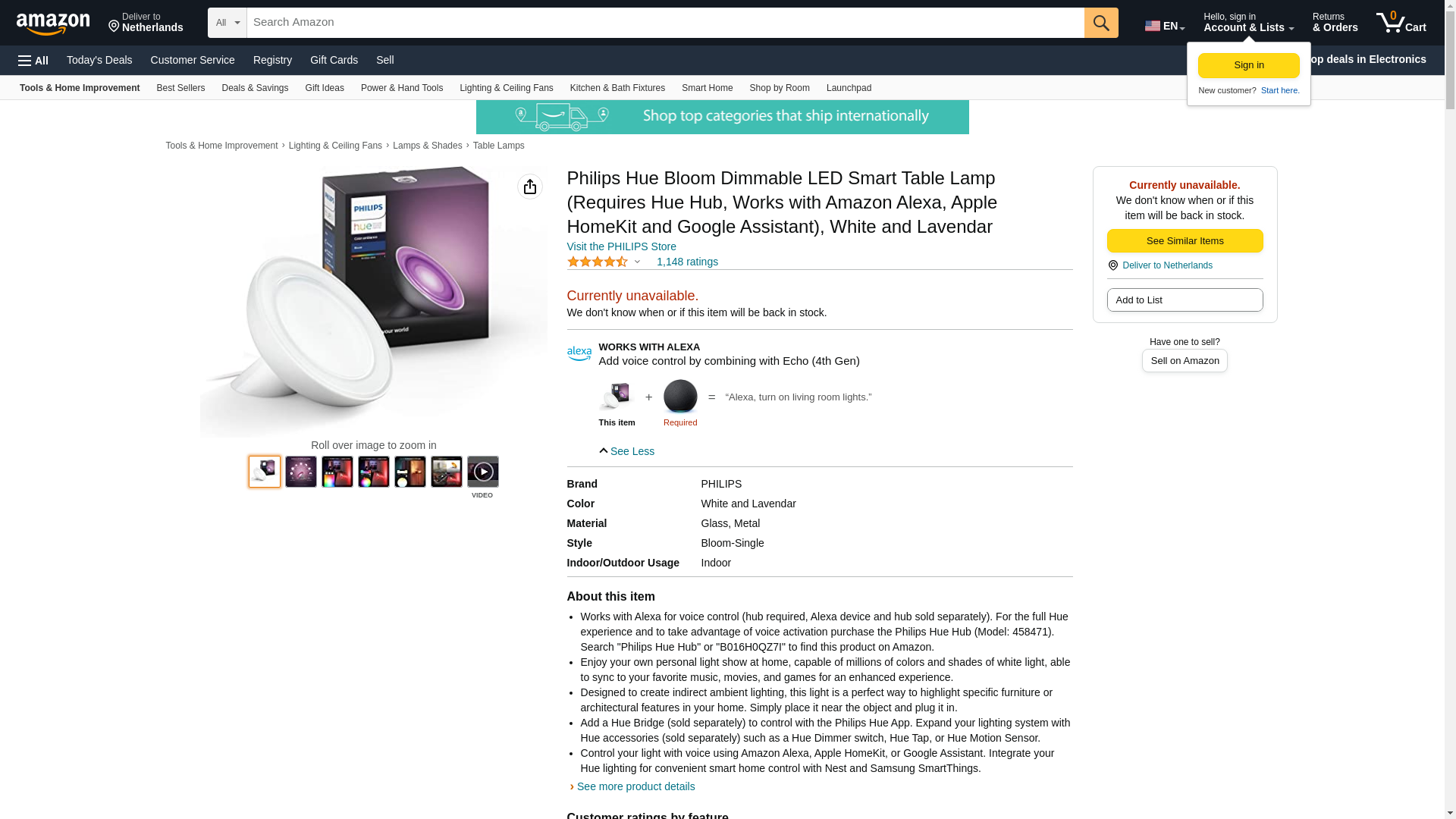 | Feature | Works with Amazon Alexa to support dimming, shades of white, and color settings through voice control (hub required, Alexa device and Philips hub sold separately) |