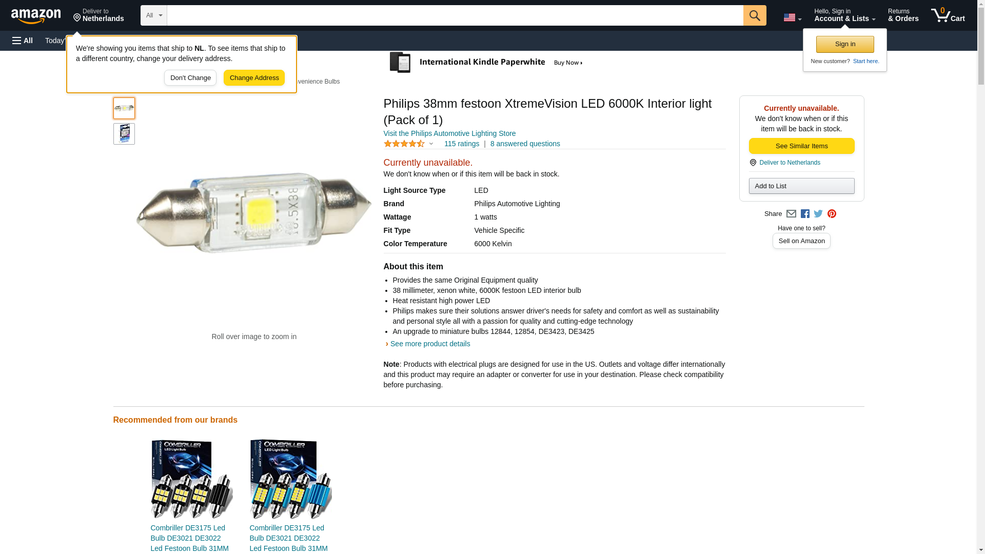 Philips 38mm festoon XtremeVision LED 6000K Interior light (Pack of 1)