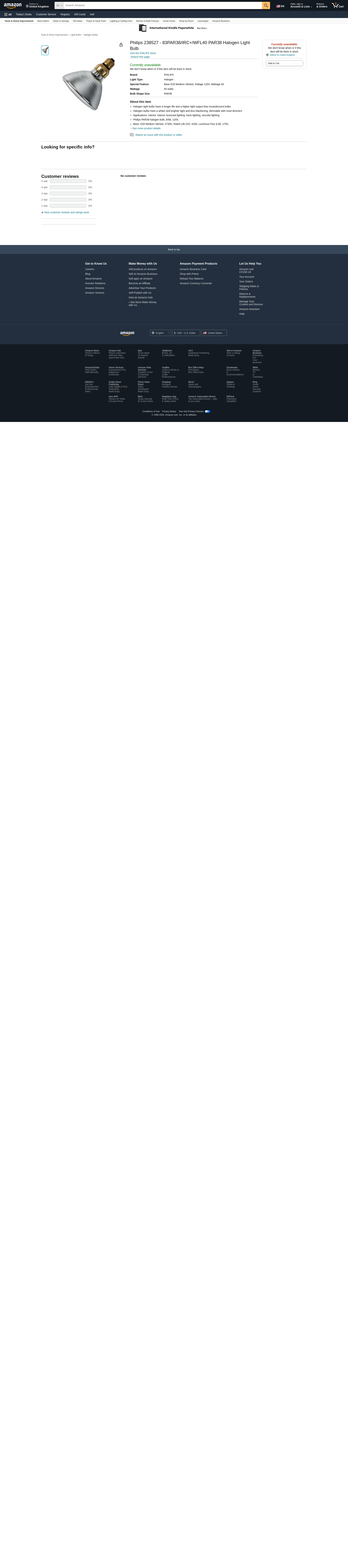 - Philips PAR38 halogen bulb, 83W, 120V,
