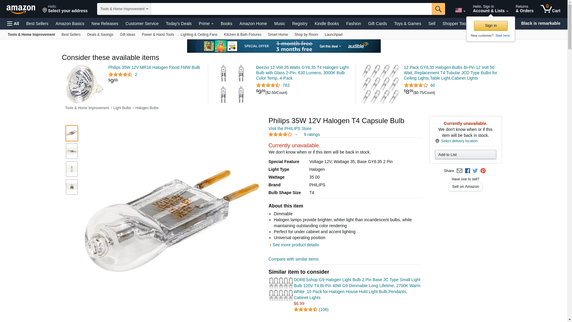 The 35-Watt Halogen T4 Mini Bi-Pin GY6.35 Base 12-Volt Low-Voltage Capsule Light Bulb is a functional light with substantial energy savings. Philips Halogen Low-Voltage capsules provide sparkling, white light ideal for task lighting or landscape lighting. These bulbs should only be used in 12-Volt enclosed fixtures.