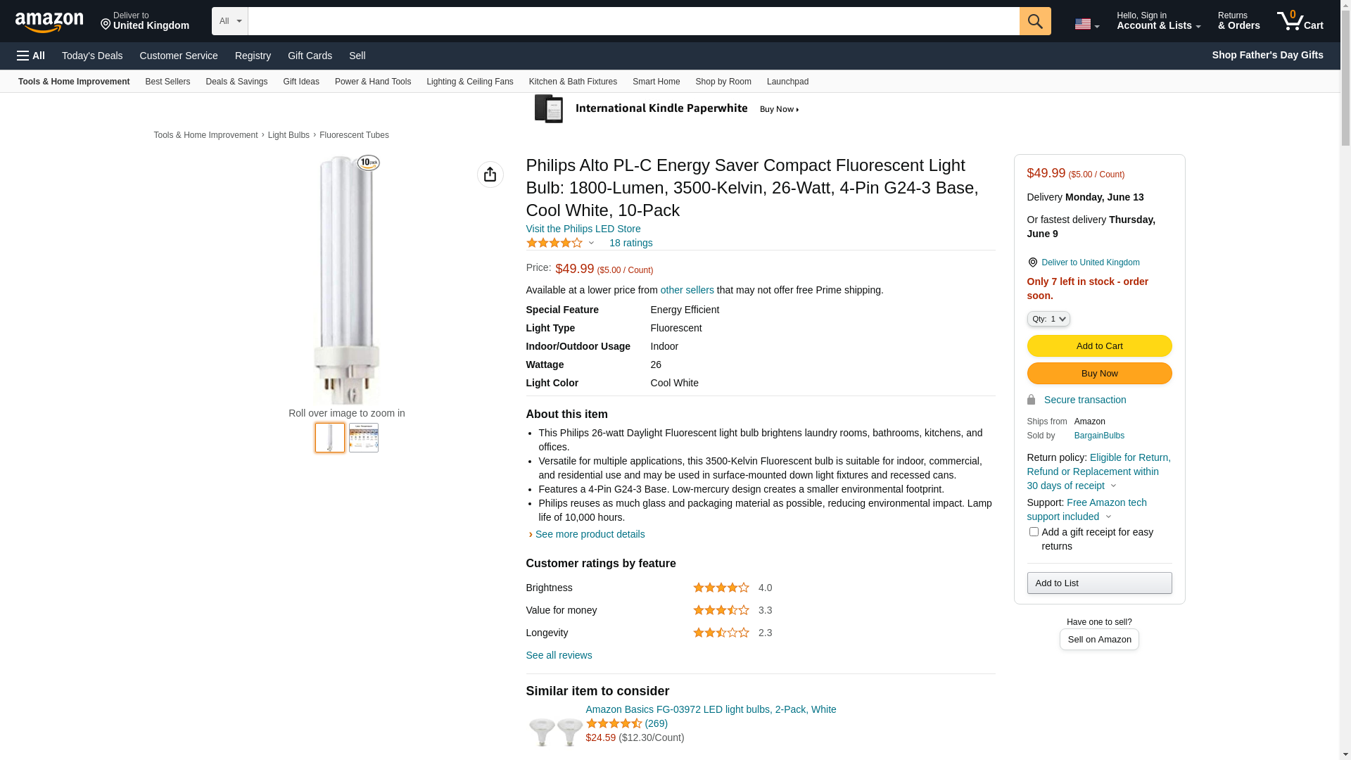 - This Philips 13-watt Cool White Fluorescent light bulb brightens laundry rooms, bathrooms, kitchens, and offices.