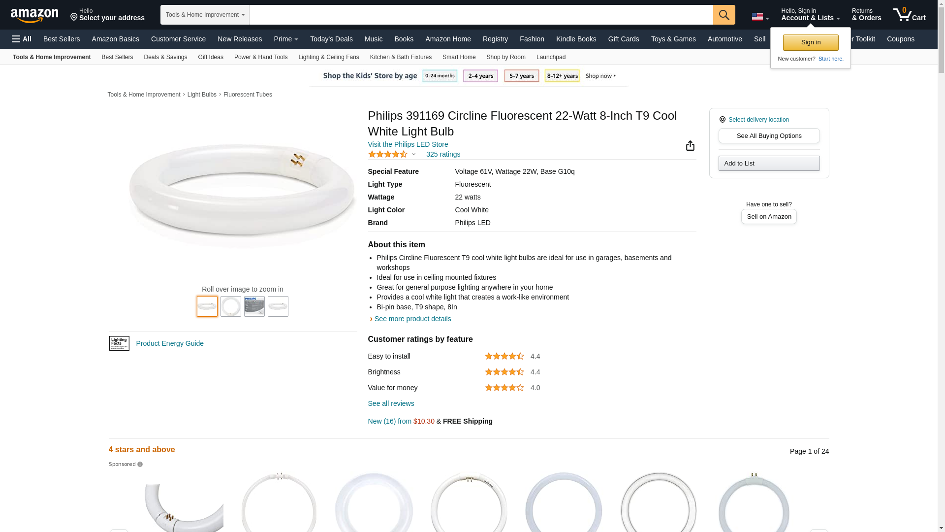 The Philips 22-Watt 8 in. T9 Cool White Circline Fluorescent Bulb is great for basements, garages or workshops. It produces 1000 Lumens and lasts up to four years or 12,000 life hours. It features a reduced mercury content and installs to fixtures that accept 4-pin base bulbs.