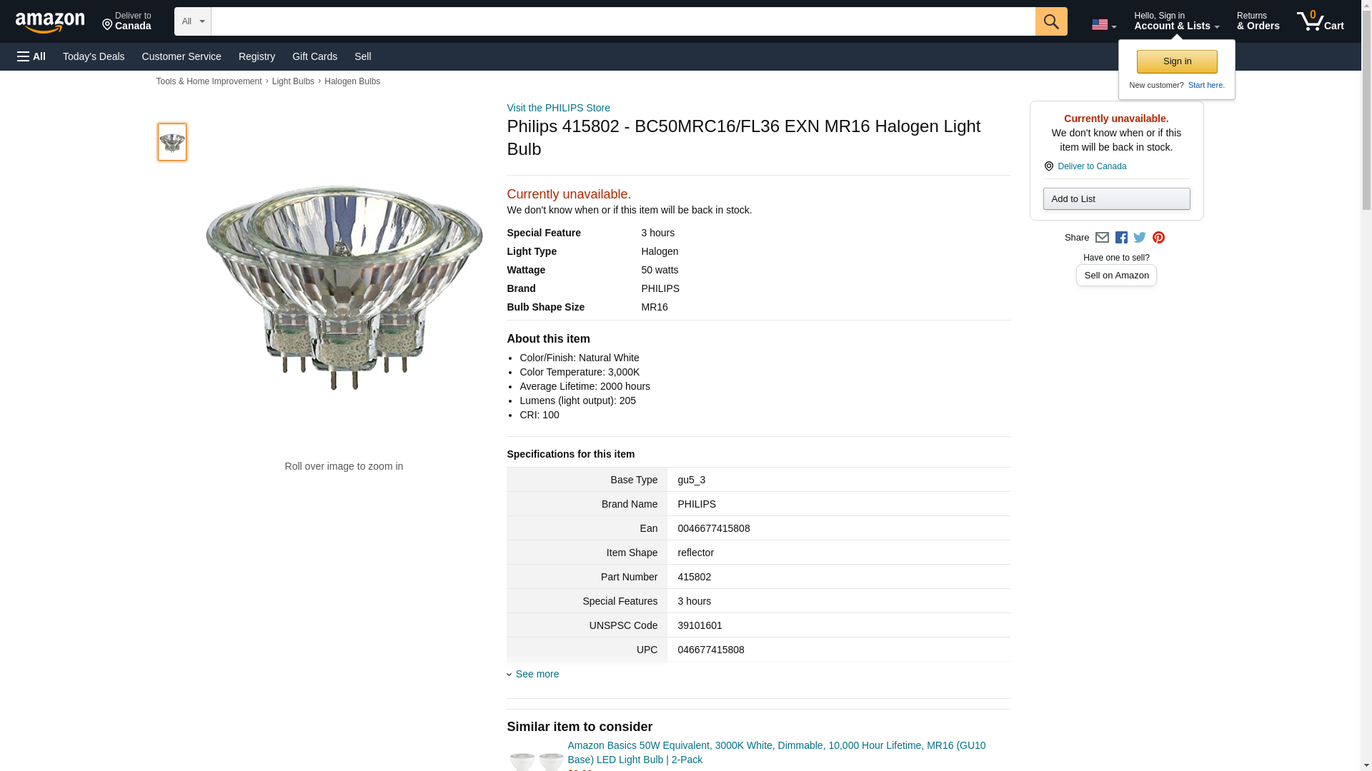 Philips 415802 - BC50MRC16/FL36 EXN MR16 Halogen Light Bulb