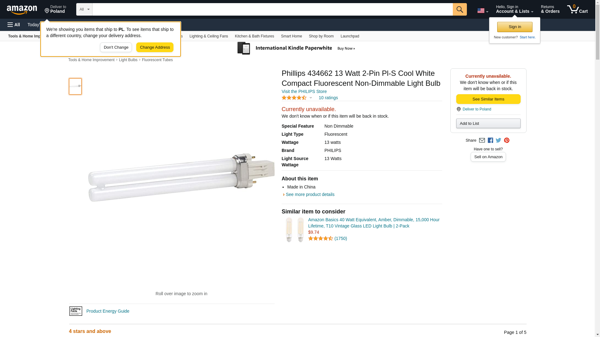 Lighting is the most integral part of any interior space that adds elegant style sophistication and beautifies your home or office spaces. The right lighting makes even a modest space look bigger and more elegant. Choose from the widest range of lighting products from usFeatures. Energy saving. Non-adjustable intensity. Package of 6 units. Cold white colour. Years of life 91. Lumens 825. Color temperature: 4100 Kelvin. PLS bulb shape. Medium base size: 2 GX23 pins. Replacement CFL bulb type. MOL 7164 MOL. Watts 13 W. Voltage: 120 V.
