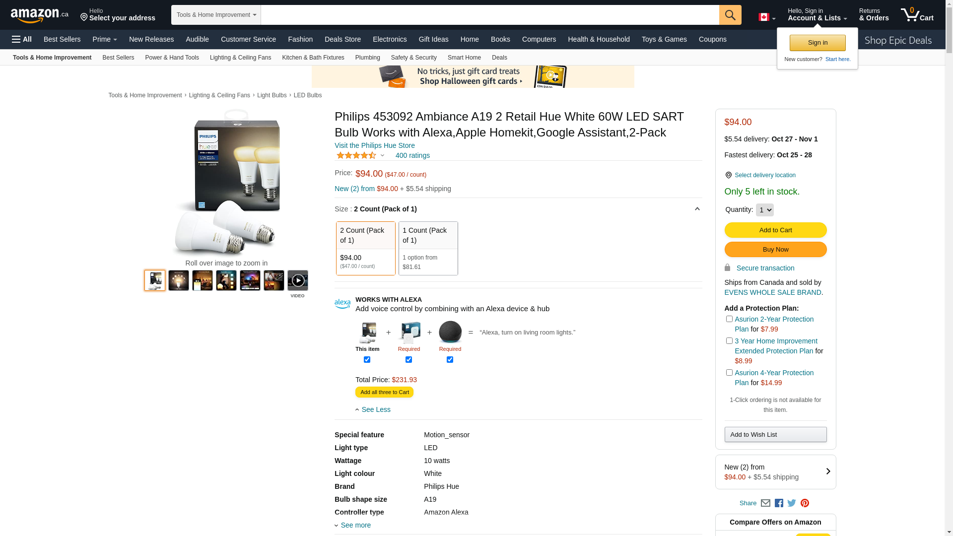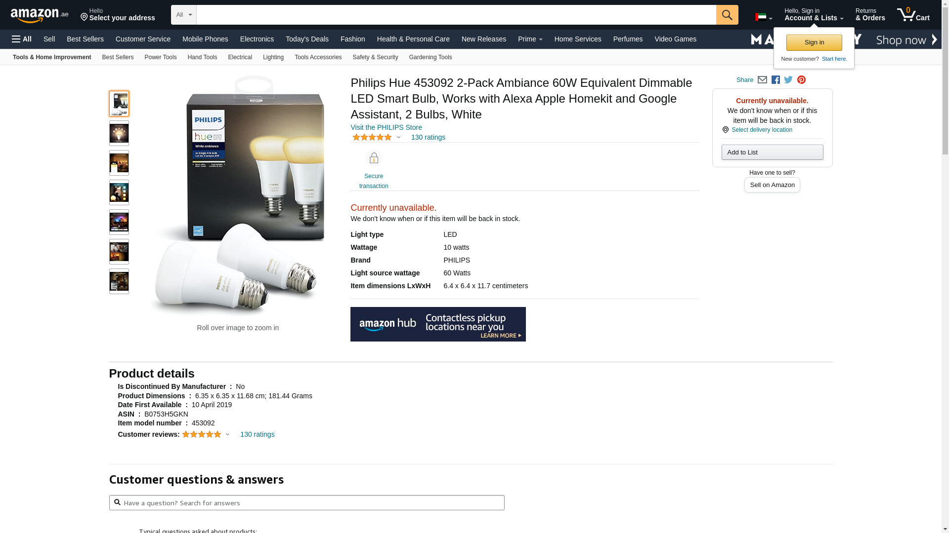 - Works with Alexa for voice control (Alexa device sold separately). For the full Hue experience and to take advantage of voice activation purchase the Philips Hue Hub (Model: 458471). Search "Philips Hue Hub" or "B016H0QZ7I" to find this product on Amazon.