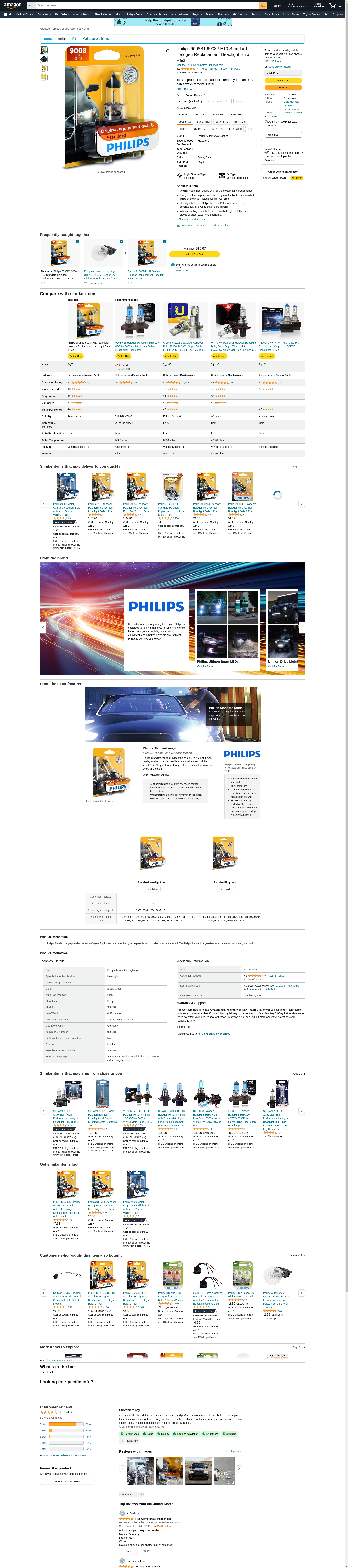 Philips 9008B1 9008 / H13 Standard Halogen Replacement Headlight Bulb, 2 Pack