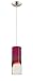 LED pendant in Satin Nickel finish with purple glass surround with etched glass inner sleeve. Cord is fully adjustable for various heights. 9W total, 1056 Lumens (initial), 2700k, 81 CRI, 120-volt.