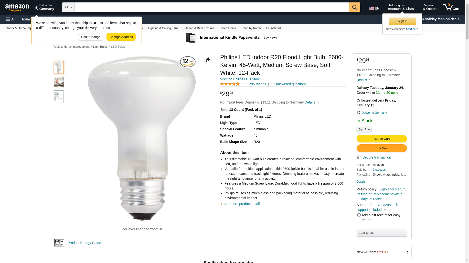 | Feature | Philips Soft White R20 light bulbs are the perfect shape for your indoor recessed cans and track light fixtures |