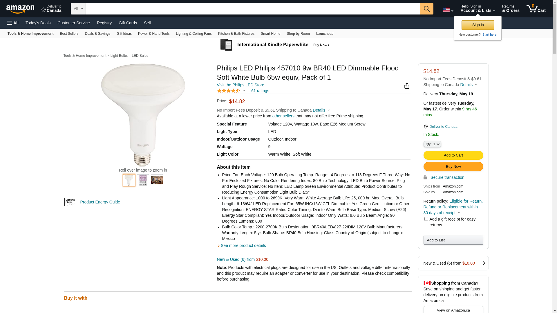 | Feature | Imported Philips BR40 LED bulbs with warm glow effect provides 800 lumens, equivalent to 65-Watt incandescents with 80% less energy use |
