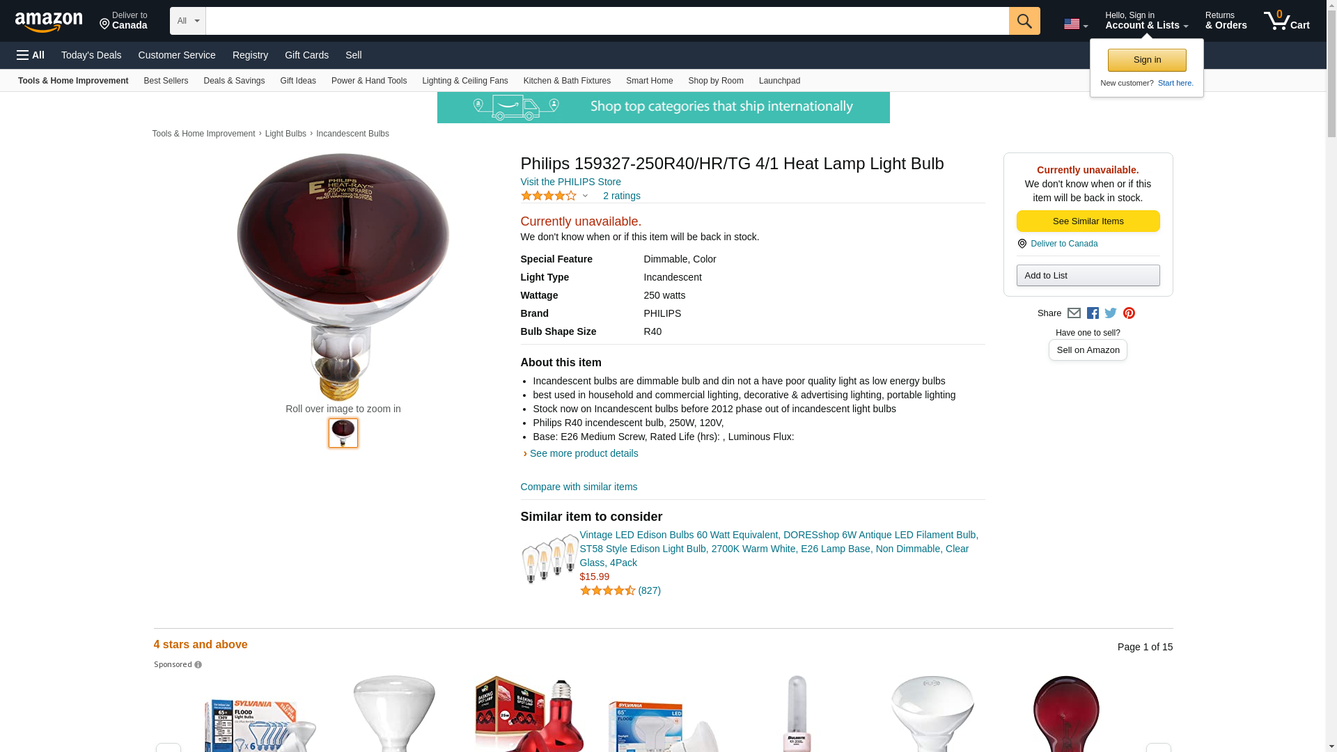 Philips 159327 - 250R40/HR/TG 4/1 Heat Lamp Light Bulb