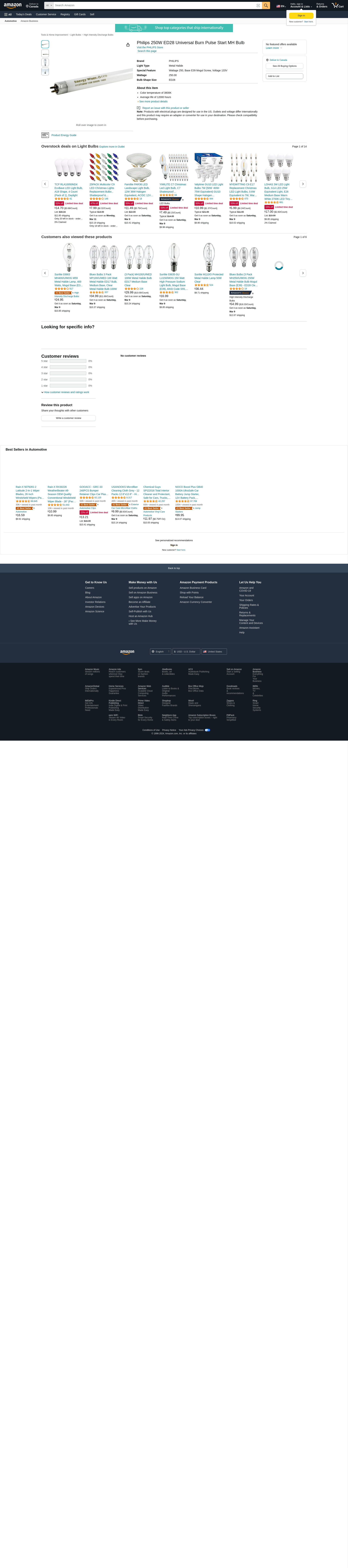 Philips Lighting 232801 ED28 Standard Metal Halide Lamp 250 Watt Mogul Base 22000 Lumens 62 CRI 3800K Cool White