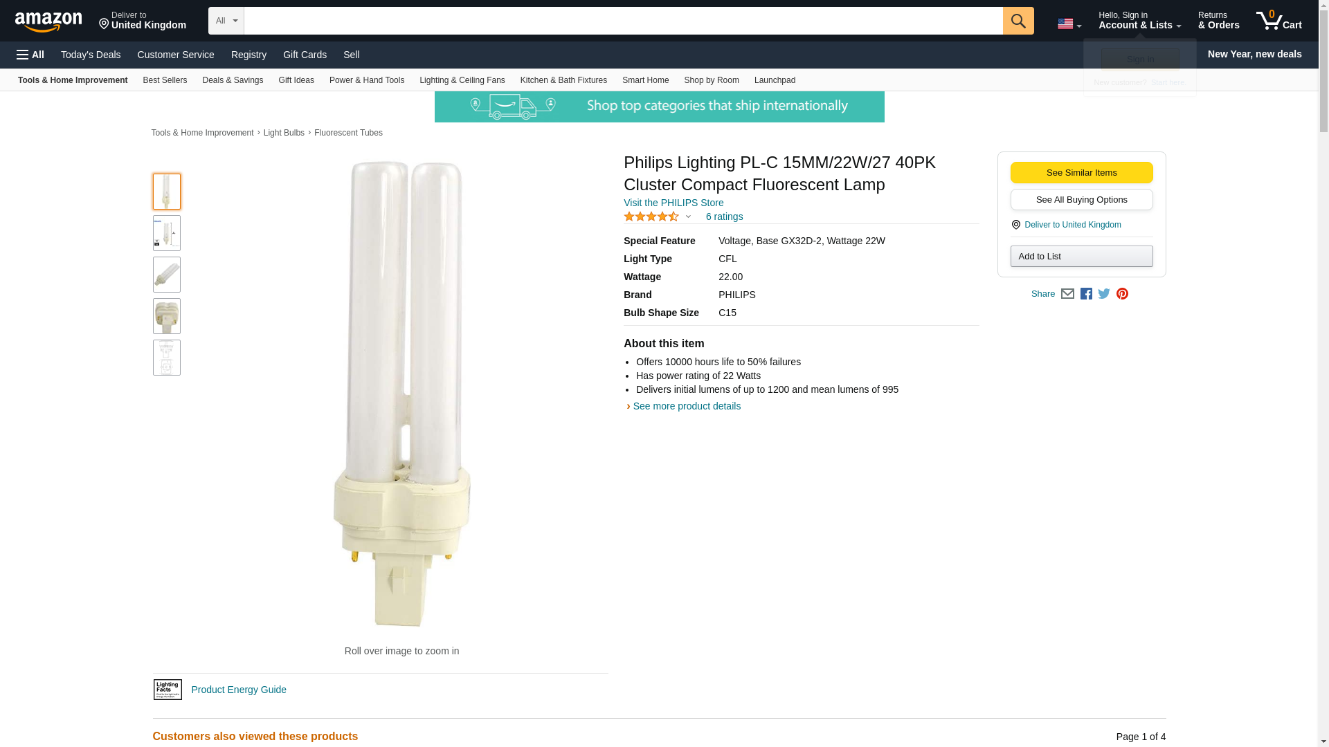 Philips Lighting Energy saver 22-Watt PL-C 2-Pin GX32d-2 base linear compact fluorescent lamp offers 1200 initial Lumens and 995 mean Lumens for bright and crisp light output. It has color rendering index of 82. Lamp with 2700K color temperature rating radiates warm white light to the surrounding. Lamp measures 6 Inch x 6 Inch Dia. It comes with average life of 10000 hours.