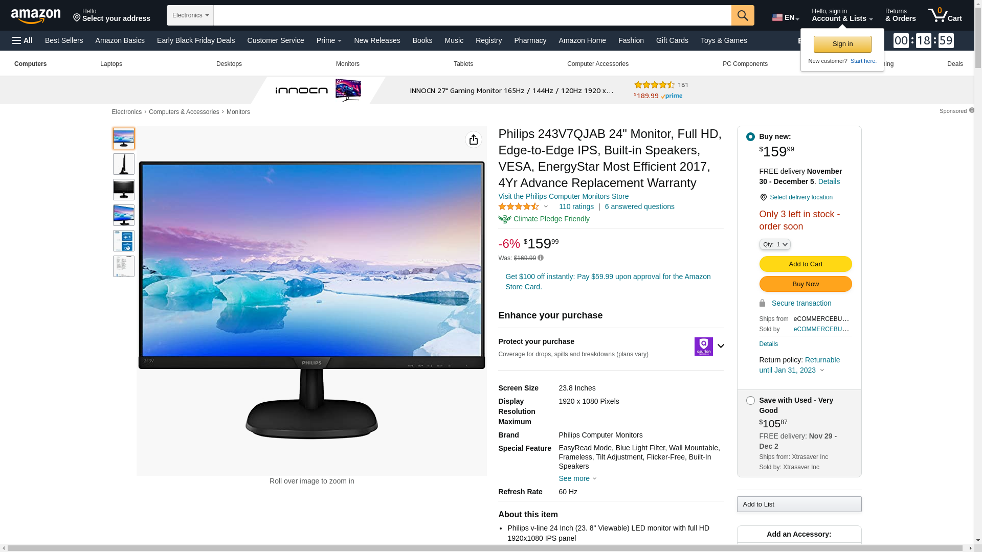 - Philips v-line 24 Inch (23. 8" Viewable) LED monitor with full HD 1920x1080 IPS panel