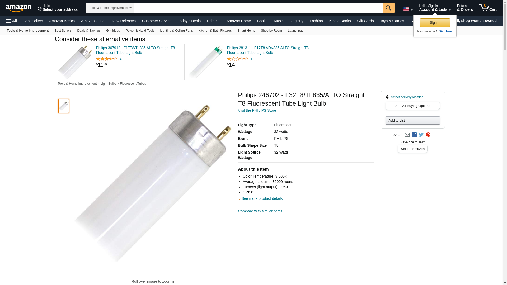| Feature | (Case of 25) F32T8 / TL835 / ALTO - CRI 85 - 36,000 Life Hrs - 2950 Lumens - 3500K - Philips 246702 |