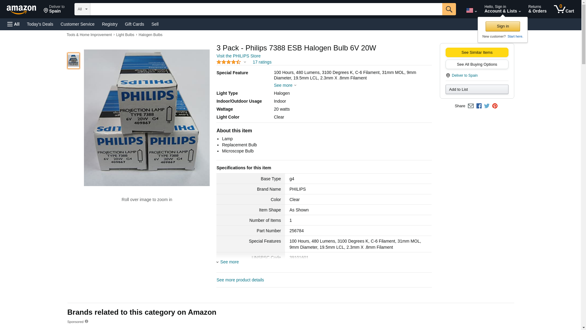 3 Pack - Philips 7388 ESB Halogen Bulb 6V 20W