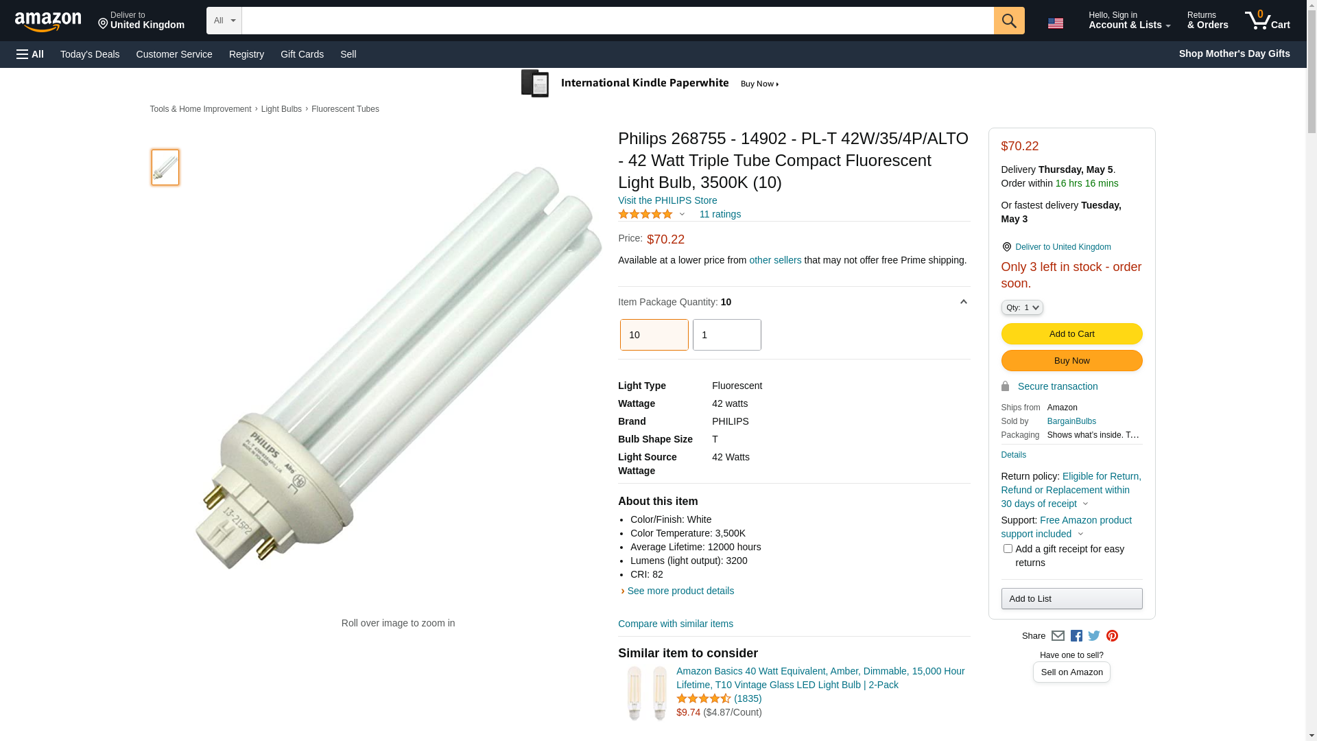 ![]() BulbAmerica | 268755 | 1 | 1 | 1 @ $11.99 | |