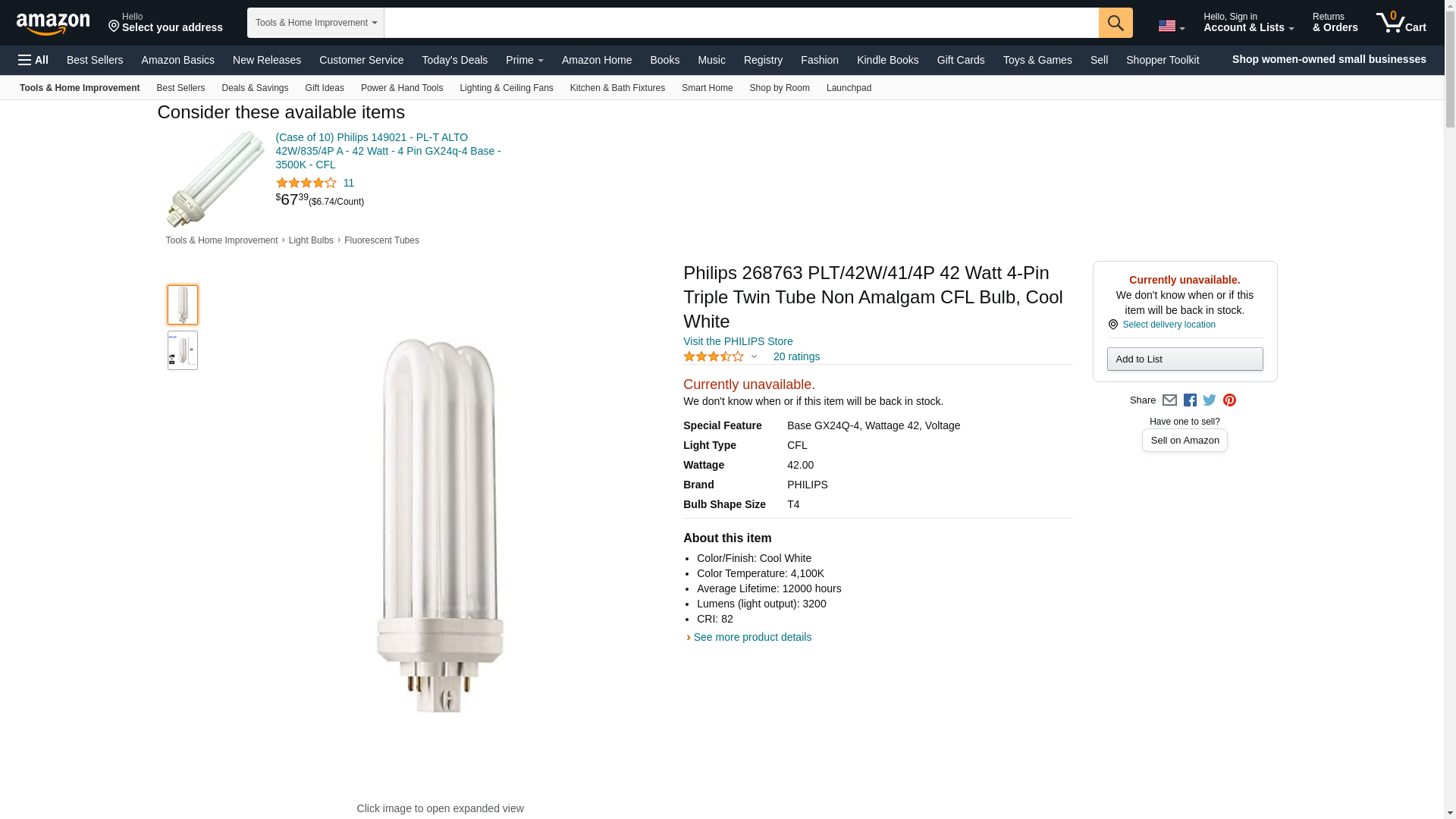 ![]() BulbAmerica | 268763 | 1 | 1 | 1 @ $15.99 | |