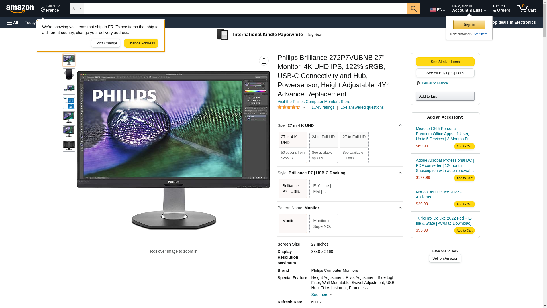 PHILIPS Brilliance 272P7VUBNB 27" Monitor, 4K UHD IPS, 122% sRGB, USB-C Connectivity and Hub, Powersensor, Height Adjustable, 4Yr Advance Replacement