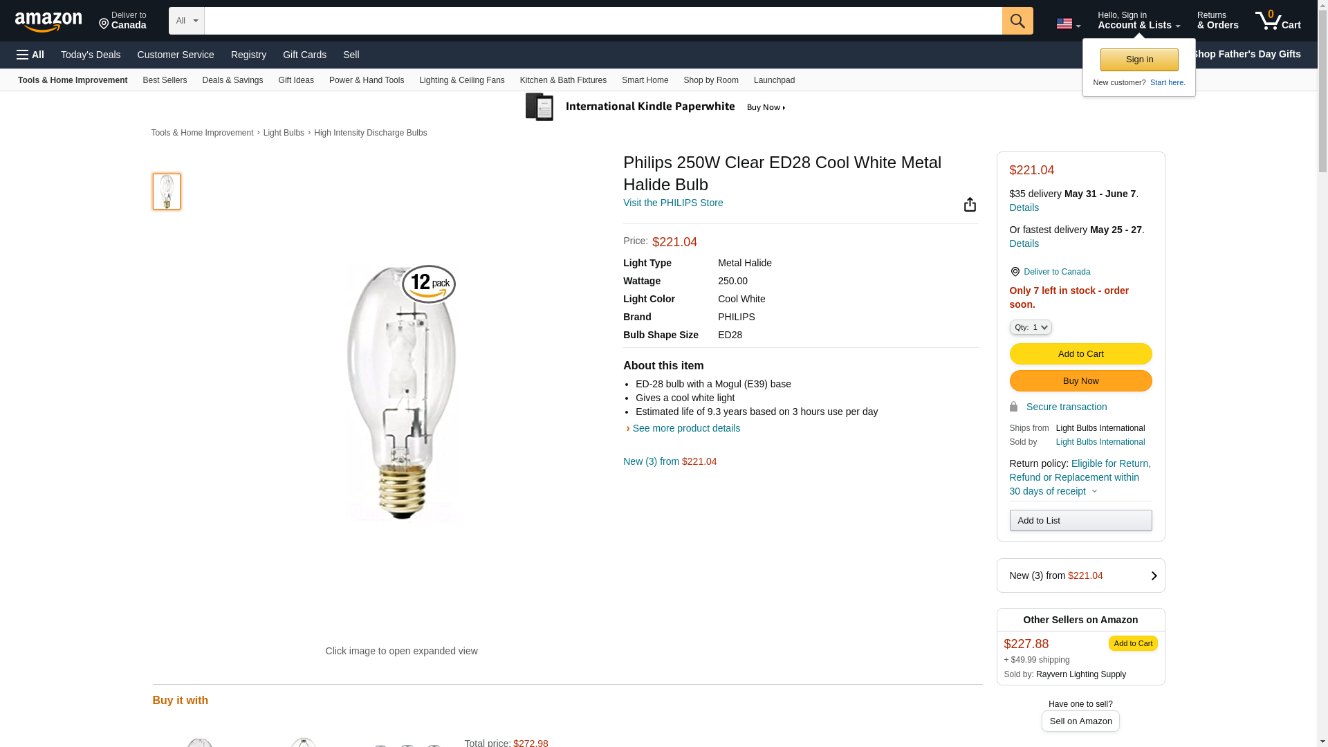 ![]() topbulb | MH250/U-PHILIPS | 1 | 1 | 1 @ $15.95, 24 @ $14.95 | |