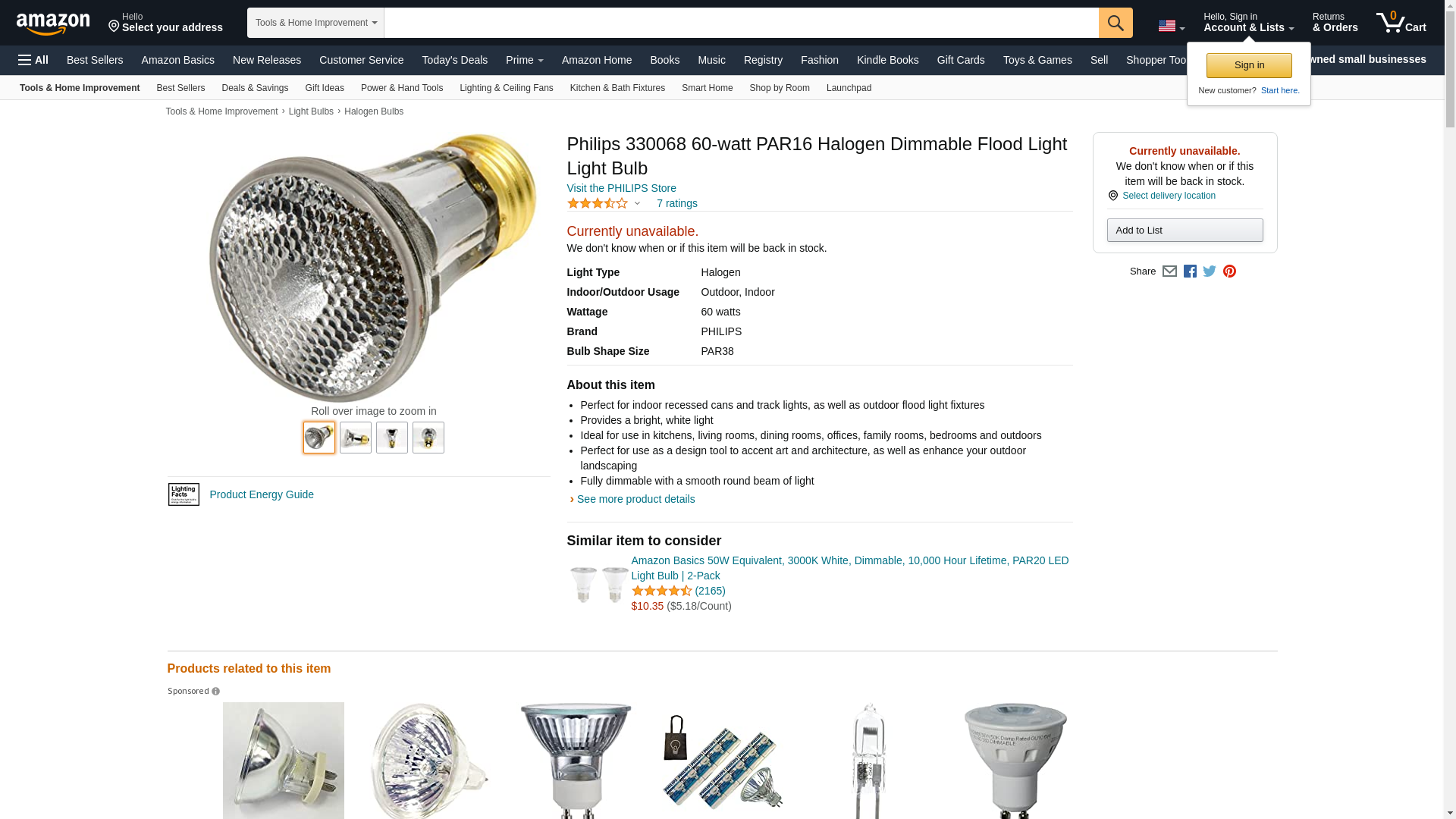 Philips 330068 60-watt PAR16 Halogen Dimmable Flood Light Light Bulb