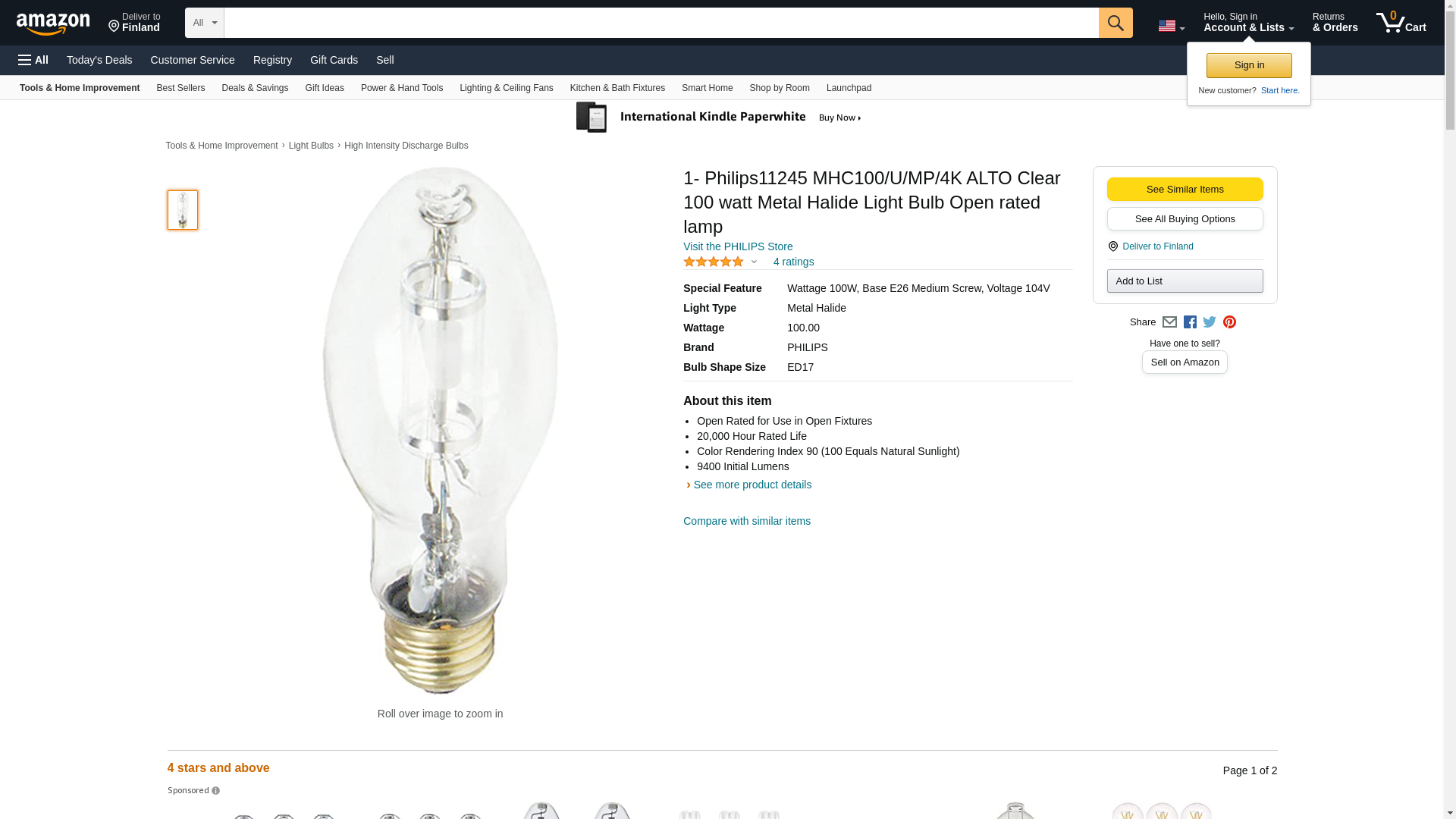 Philips 360602 - MHC100/U/MP/4K ALTO 100 watt Metal Halide Light Bulb
