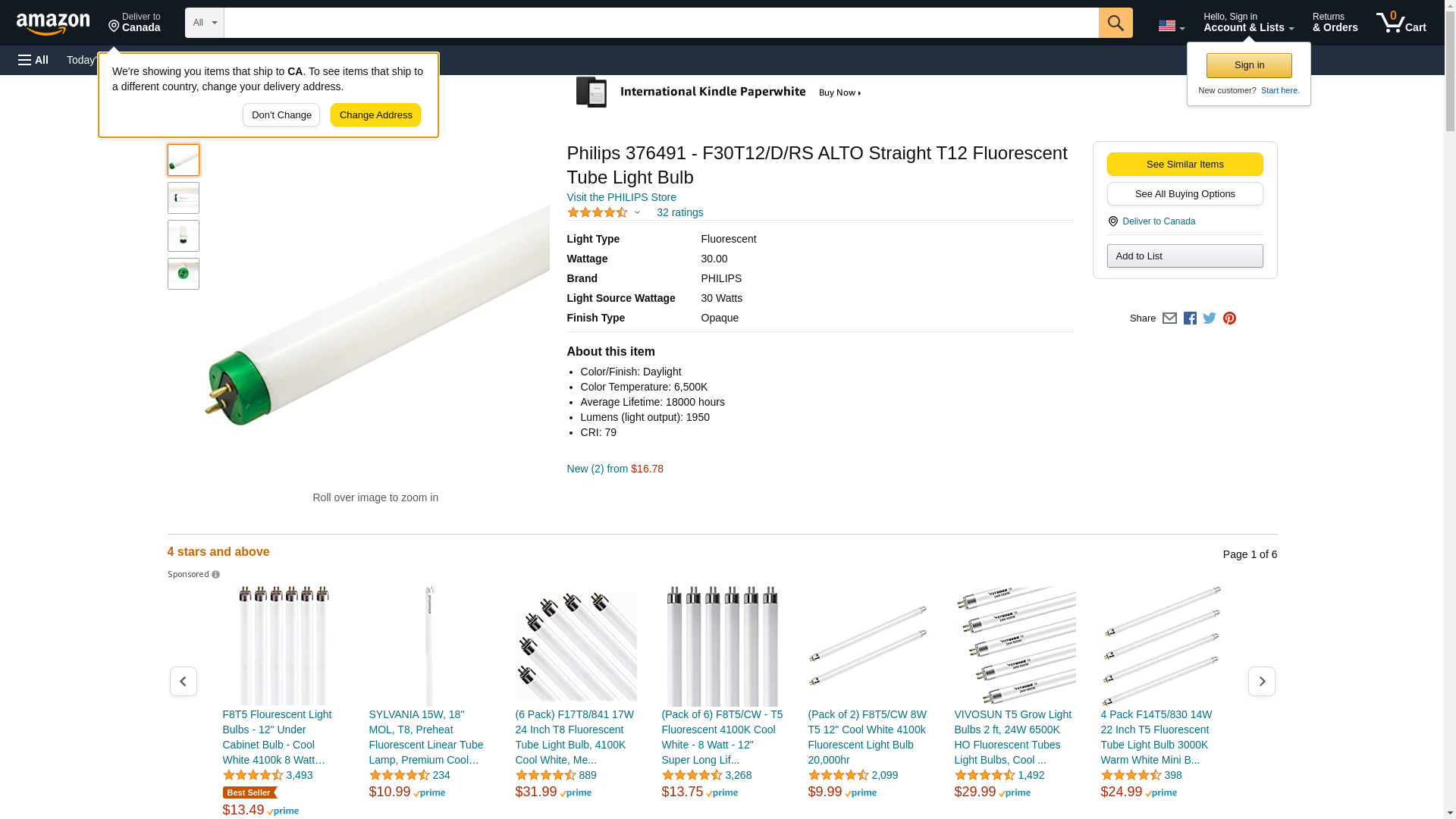 Philips 376491 - F30T12/D/RS ALTO Straight T12 Fluorescent Tube Light Bulb