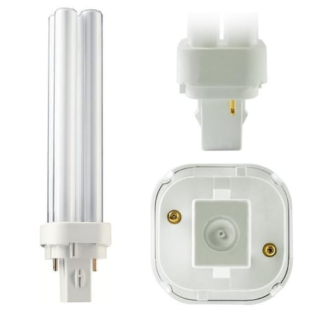 <p>Philips brand 18 Watt plug-in compact fluorescent bulb with G24d-2 base. ALTO technology uses less mercury for an environmentally safer lamp.</p><ul><li><p>Very Warm white color for a more inviting atmosphere</p></li><li><p>Performance - well known brand name product at a competitive price</p></li></ul><p>5-Pack Only </p>
