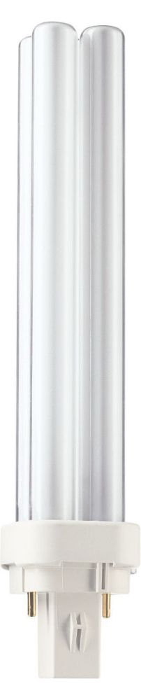Philips Lighting Alto 26.5-Watt PL-C 2-Pin G24d-3 Base linear compact fluorescent lamp offers 1800 Lumens of bright light output. It has efficacy of 68 LPW. Lamp has current rating of 0.335 Amp. It has color rendering index of 82. Lamp with 4100K color temperature rating radiates cool white light to the surrounding. Lamp measures 171.4 mm x 27.1 mm Dia. It comes with average life of 10000 hours.