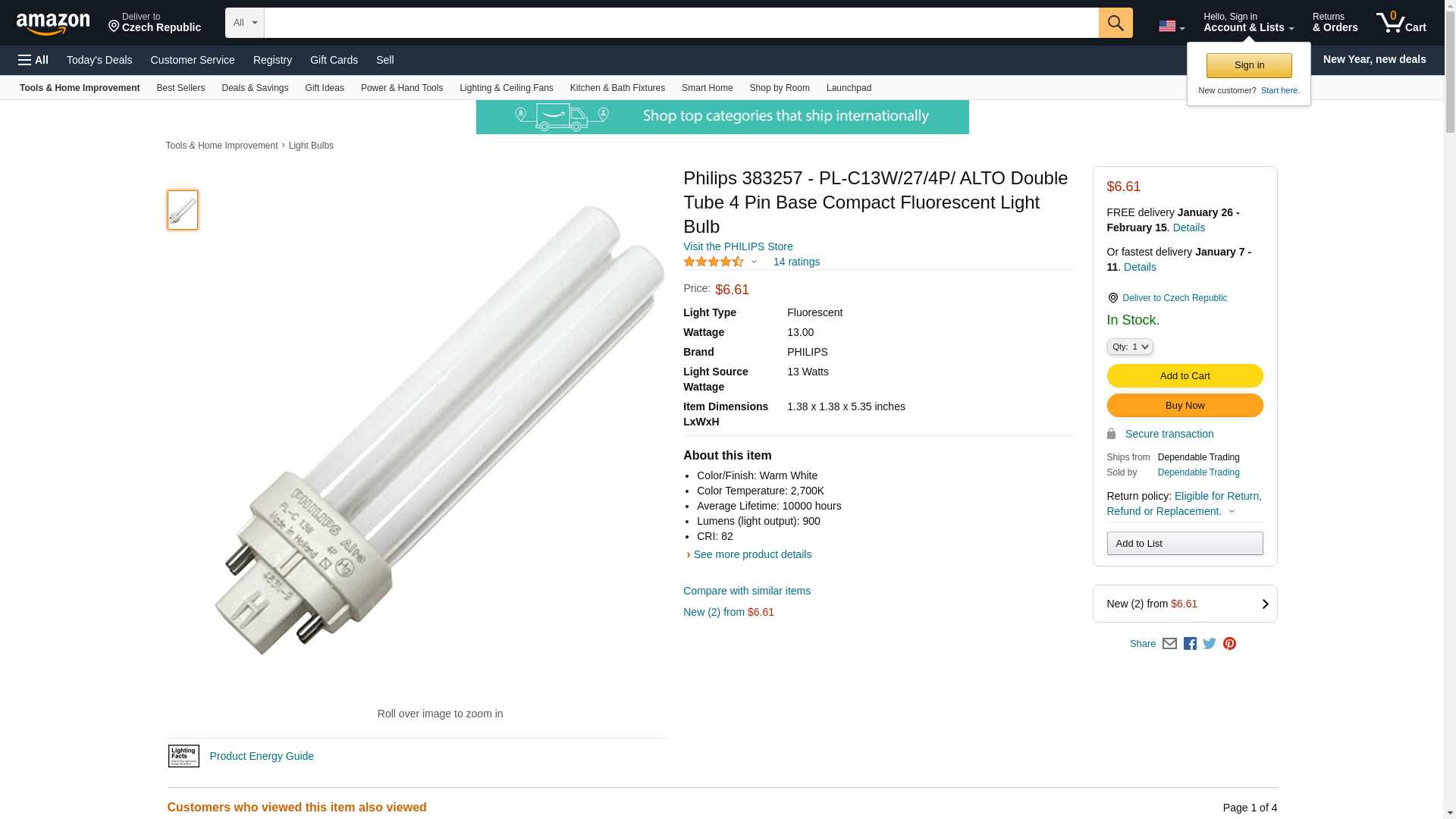 ![]() BulbAmerica | 383257 | 1 | 1 | 1 @ $8.99 | |