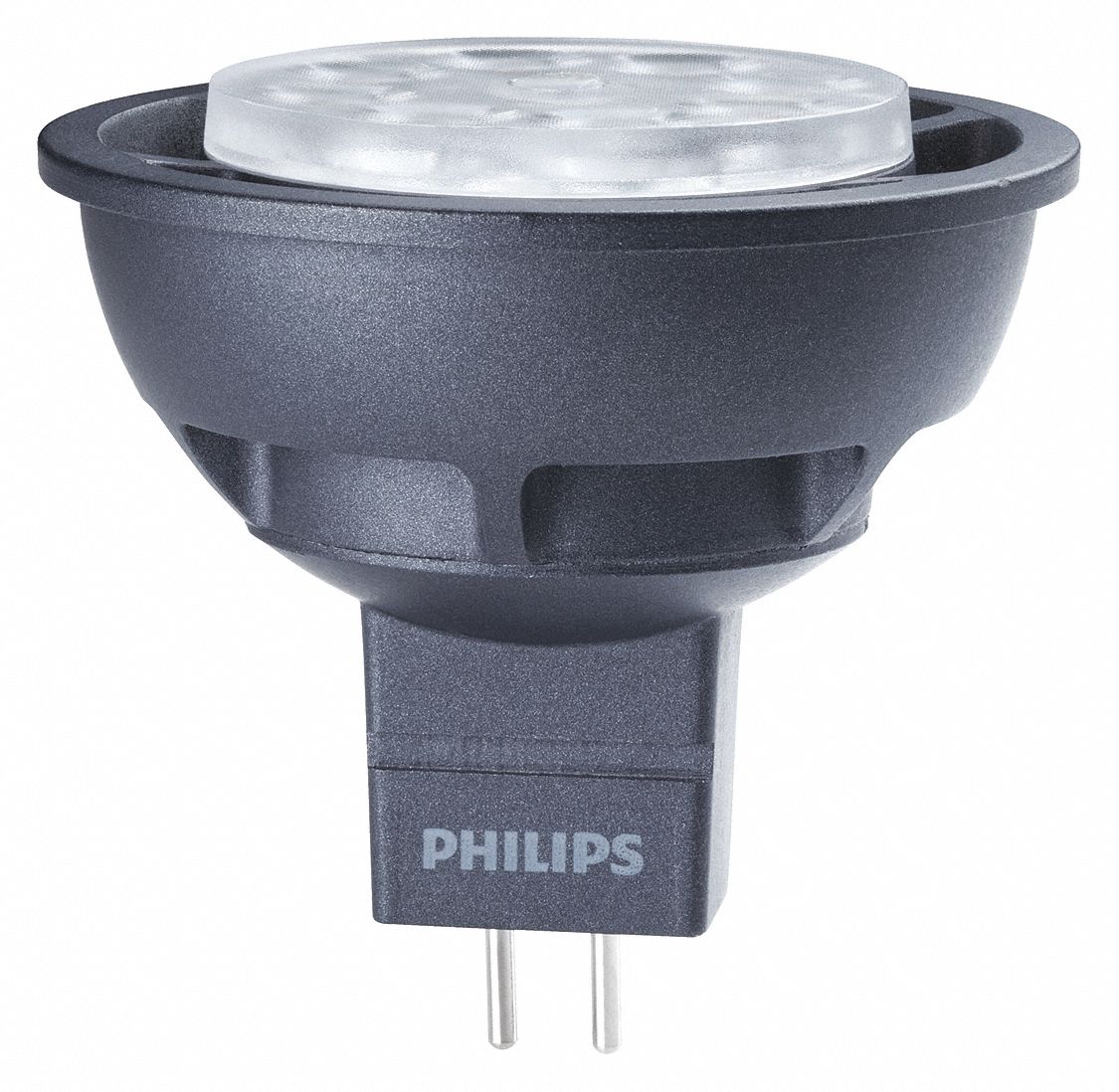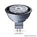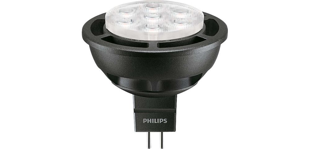 Philips 6.5 Watt MR16 12 Volt GU5.3 Bi-Pin Base AirFlux 2700K to 2200K (Light dims to a warm glow, similar to incandescent) Dimming 410 Lumens 25,000 Hours Flood 25 Degree Beam Spread LED Lamp