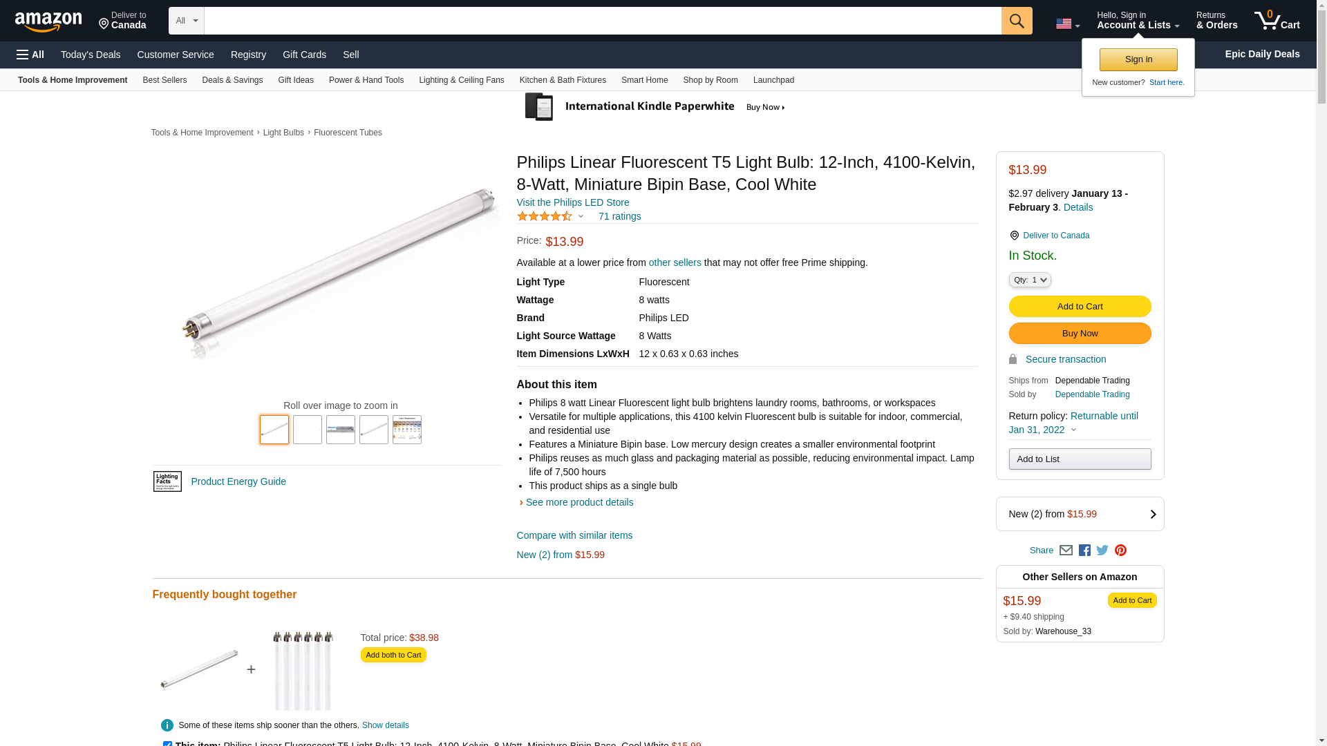 Philips Linear Fluorescent T5 Light Bulb: 12-Inch, 4100-Kelvin, 8-Watt, Miniature Bipin Base, Cool White