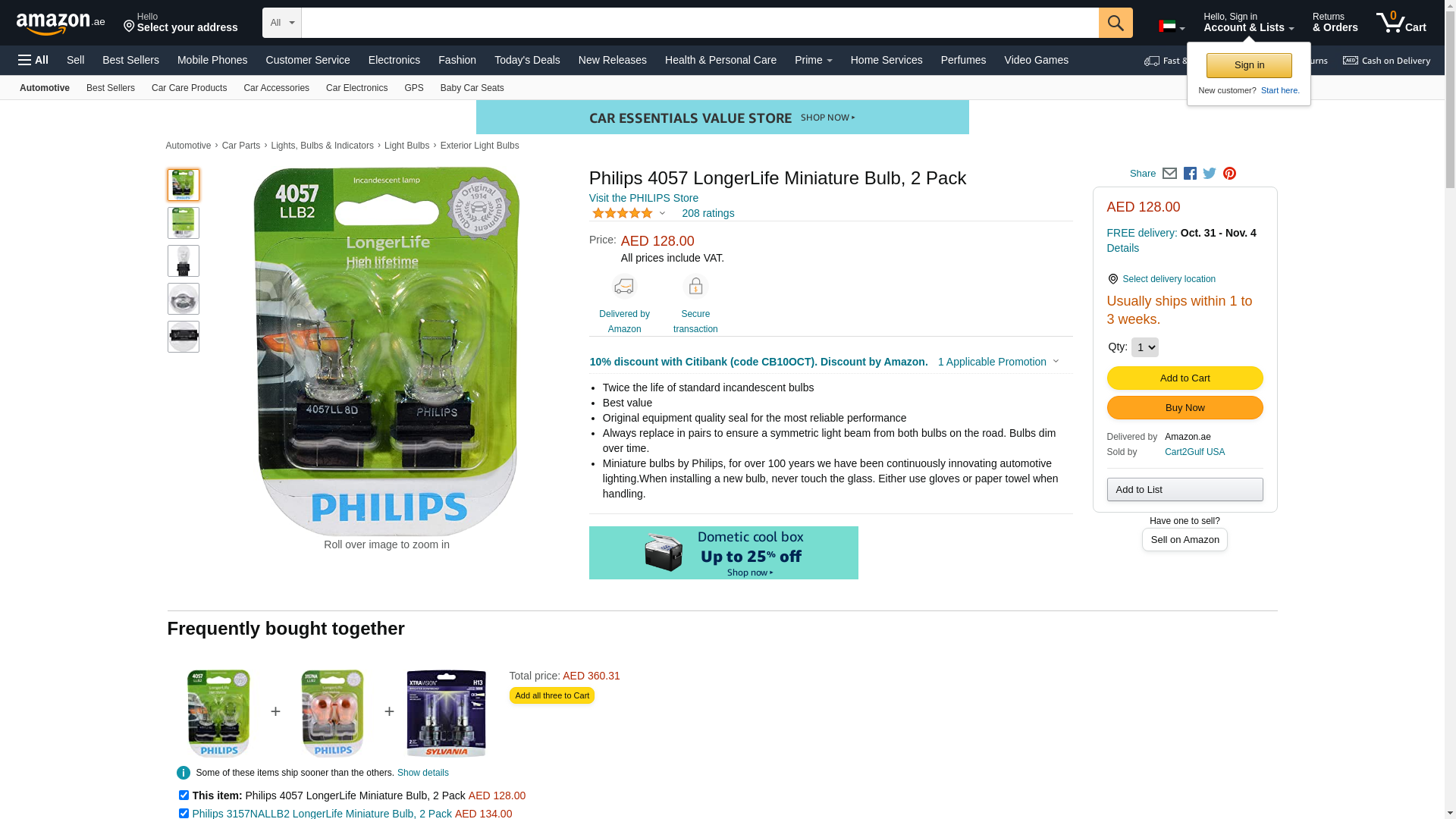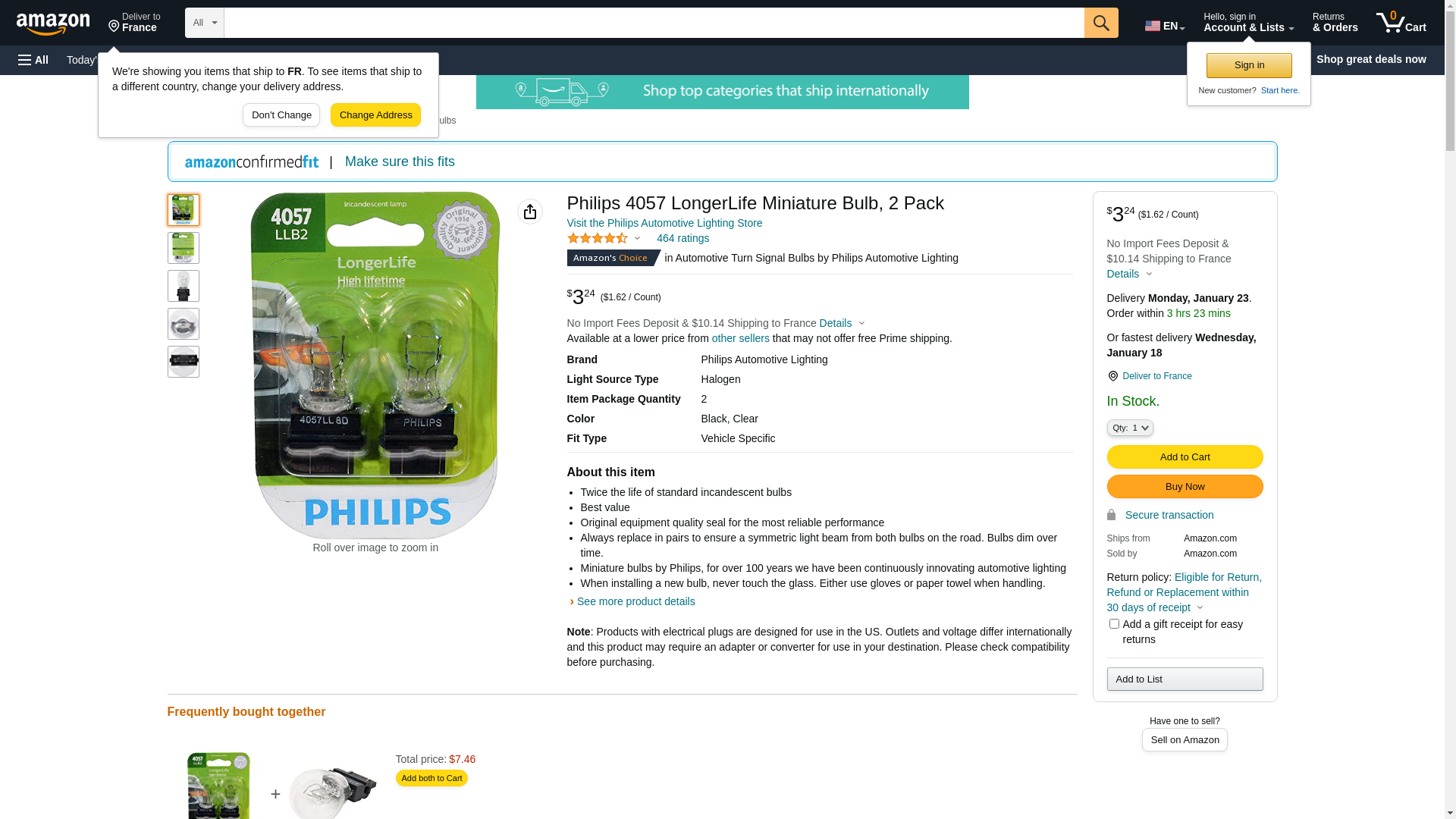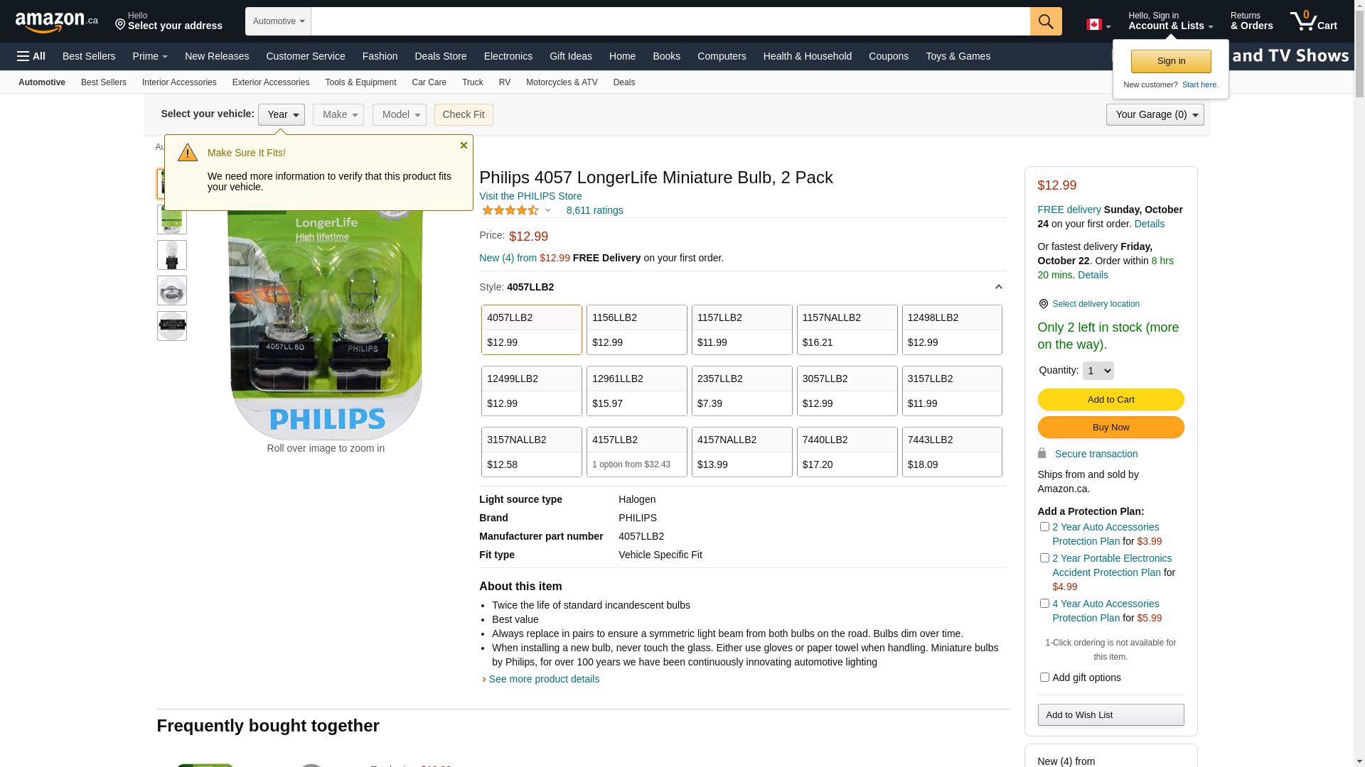 ![]() BulbAmerica | 4057LLB2 | 1 | 1 | 1 @ $4.99 | |