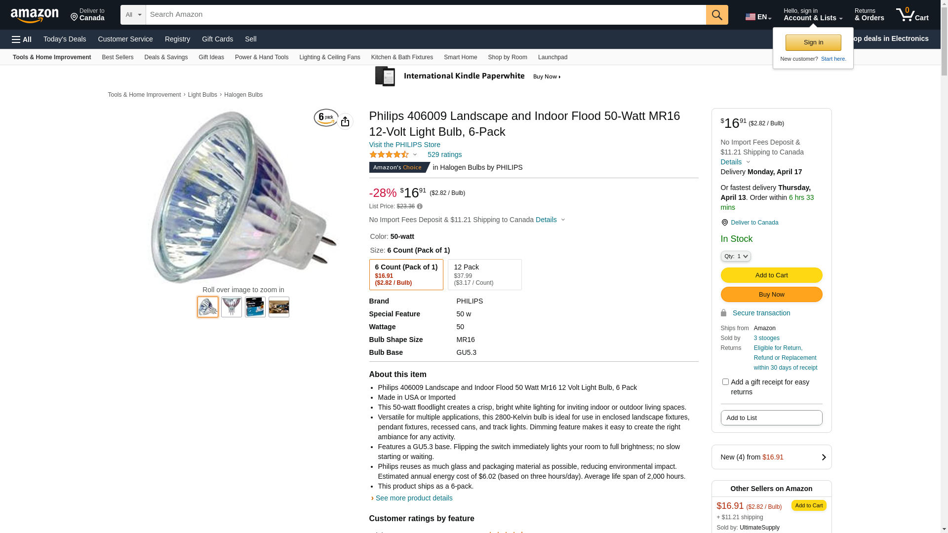 Philips 406009 Landscape and Indoor Flood 50-Watt MR16 12-Volt Light Bulb, 6-Pack