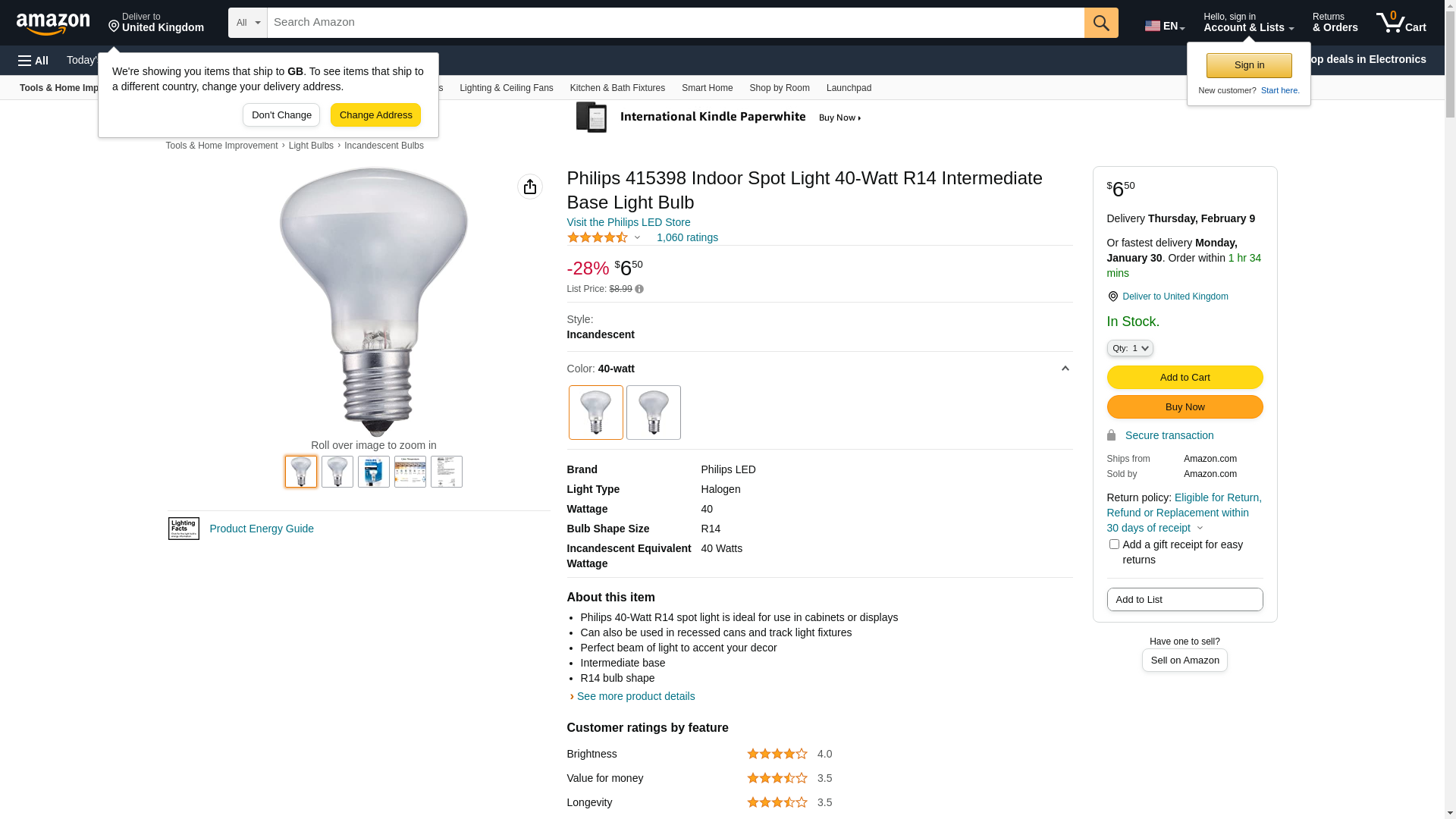 - Philips 40-Watt R14 spot light is ideal for use in cabinets or displays