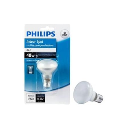 The Philips 40-Watt R14 Spot Light Bulb features an intermediate base and a R14 shape that is ideal for indoor, residential use. This incandescent light bulb is rated for 1,500 hours of use and provides a soft white light with a light output of 250 Lumens.