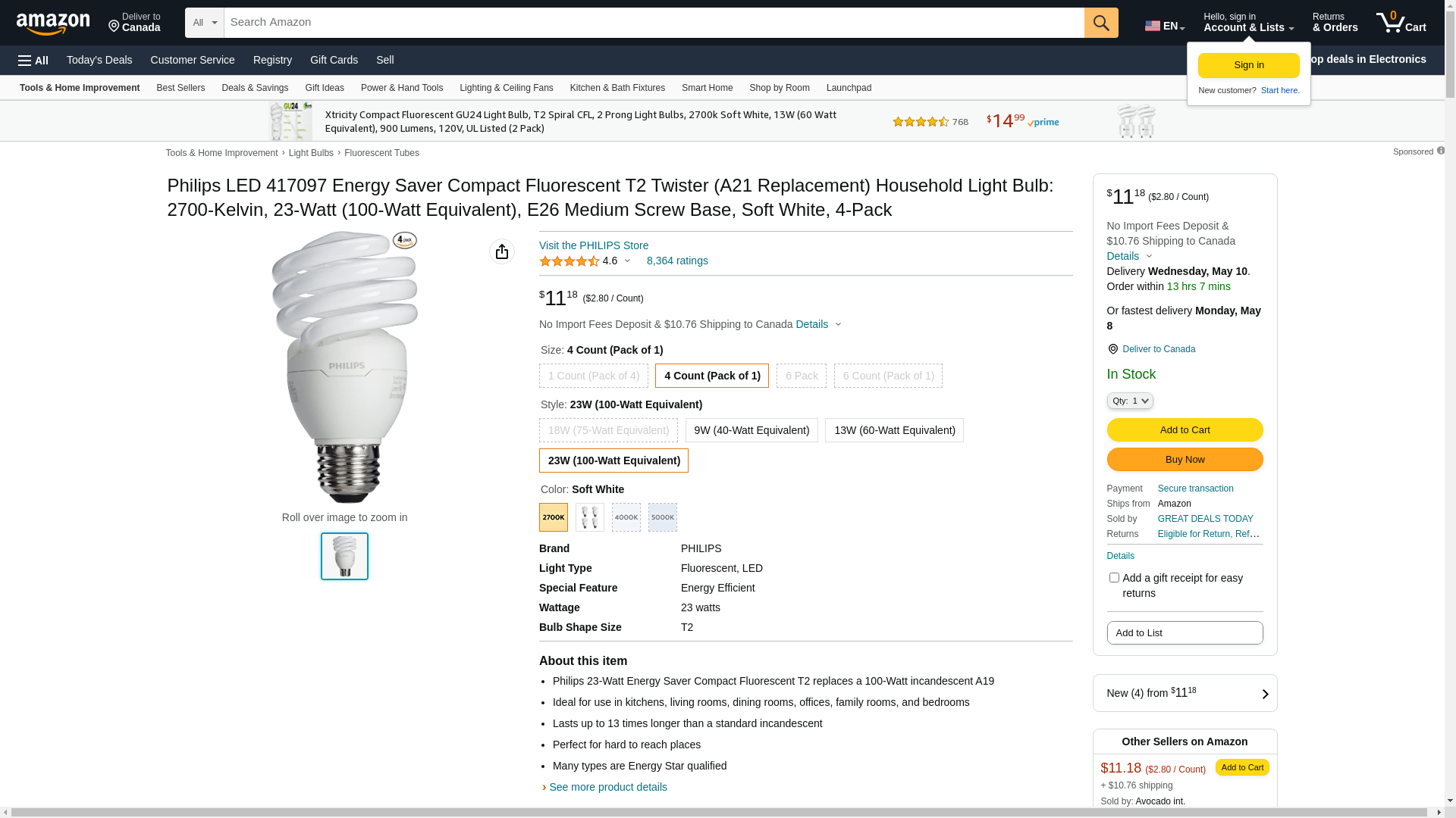 - Philips 23-Watt Energy Saver Compact Fluorescent T2 replaces a 100-Watt incandescent A19