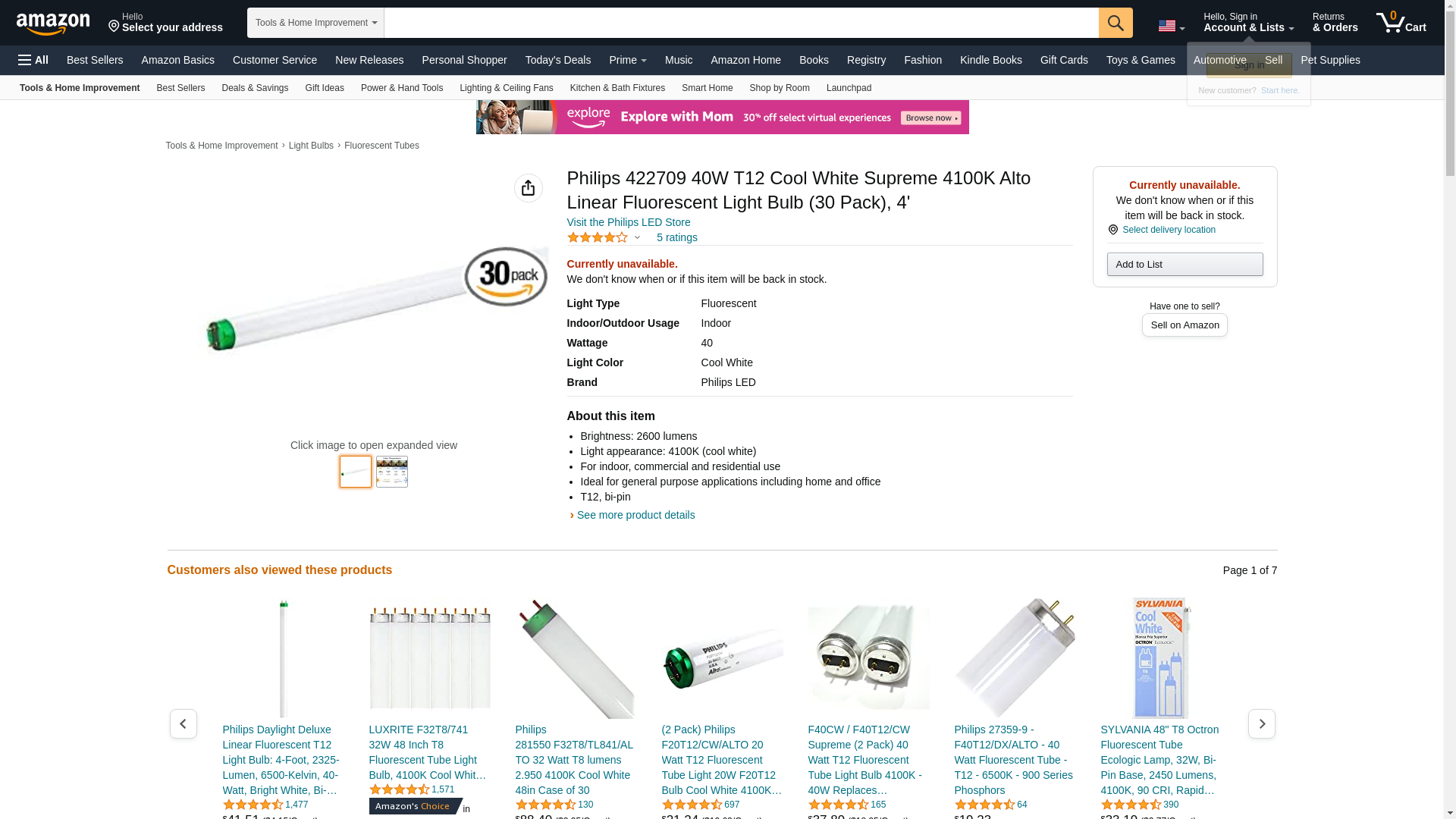 Philips 422709 40W T12 Cool White Supreme 4100K Alto Linear Fluorescent Light Bulb (30 Pack), 4'