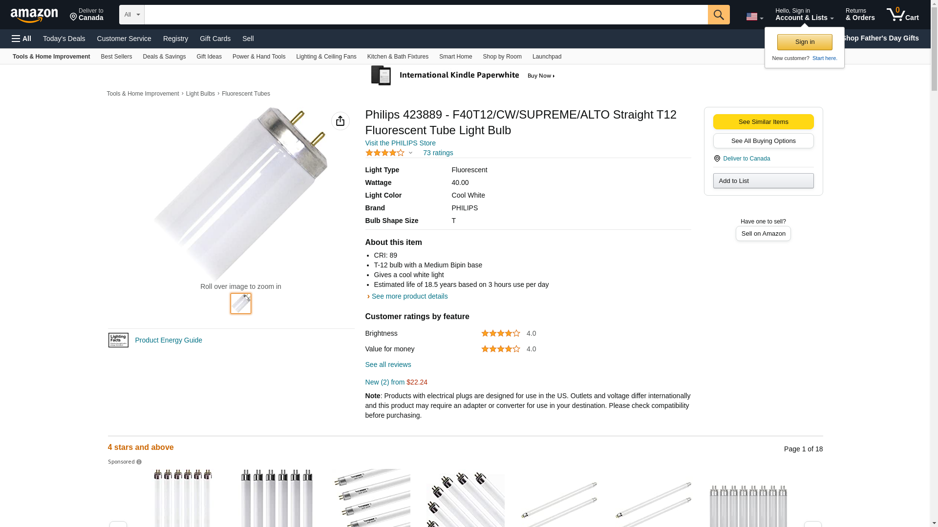 Philips 423889 - F40T12/CW/SUPREME/ALTO Straight T12 Fluorescent Tube Light Bulb,Cool White, 40 watt