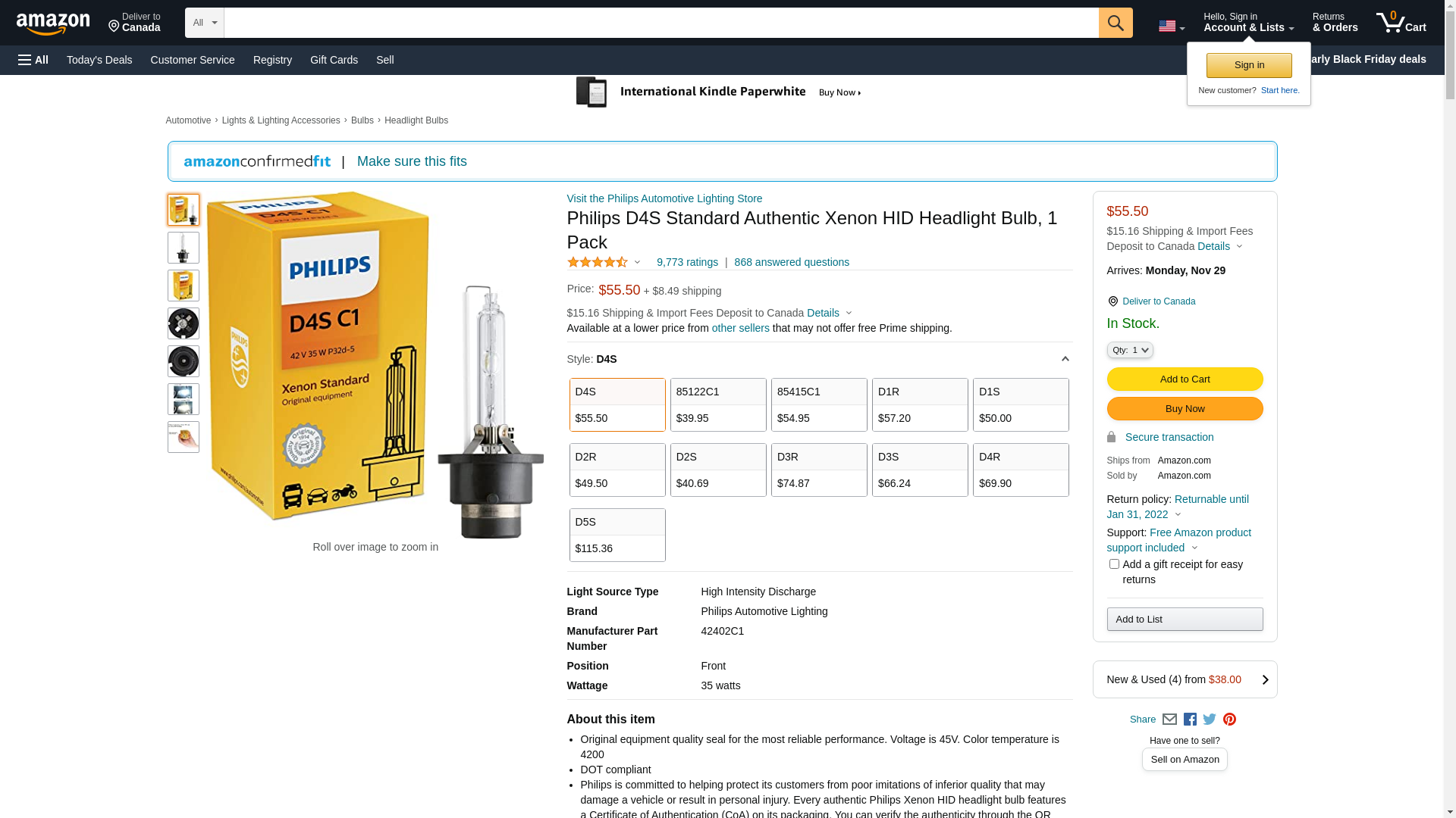 PHILIPS LIGHTING 42402C1 42402 XENON HID BULB
