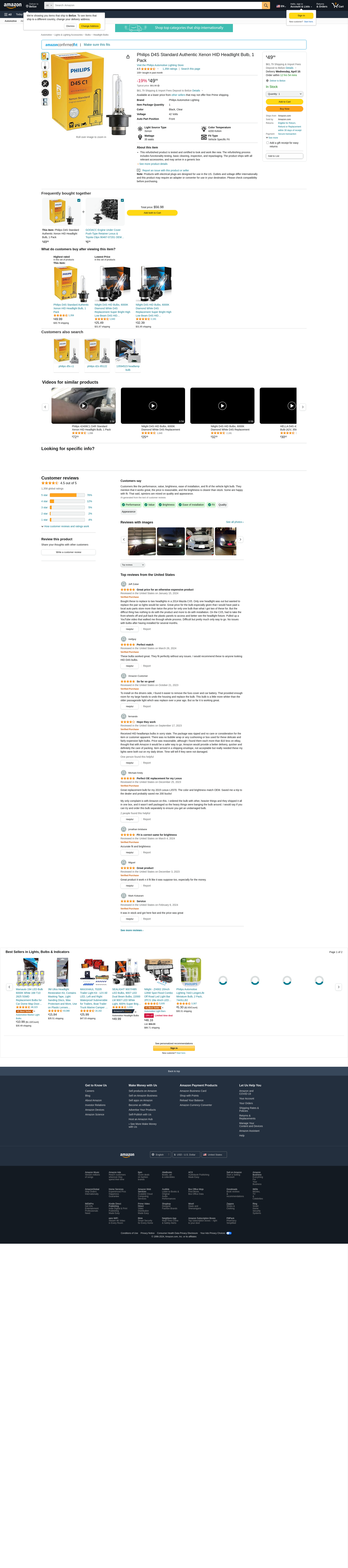 Philips D4S Xenon HID D4S Standard Xenon HID Headlight Bulb, 1 Pack