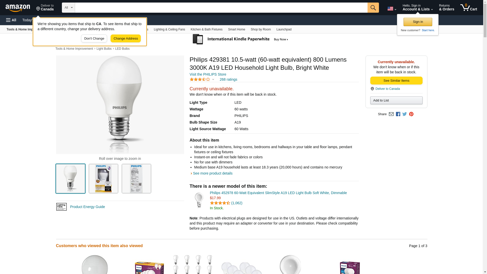 Philips 429381 10.5-watt (60-watt equivalent) 800 Lumens 3000K A19 LED Household Light Bulb, Bright White
