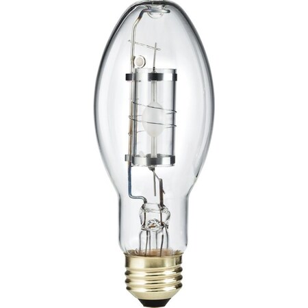 Philips Lighting MasterColor CDM Elite Protected 100-Watt ED17P E26 single contact medium screw base metal-halide lamp offers 7520 mean Lumens for bright and crisp light output. It has voltage rating of 103 Volts and 1.1 Amps. This lamp in clear color, has color rendering index of 90. Lamp with 4000K color temperature rating radiates cool white light to the surrounding. It measures 5.438 Inch x 2.125 Inch Dia. Lamp delivers average life of 20000 hours. Lamp features hard glass construction with